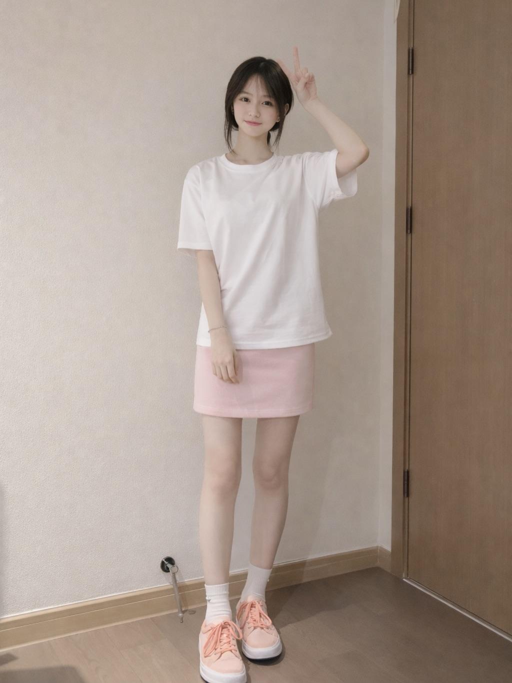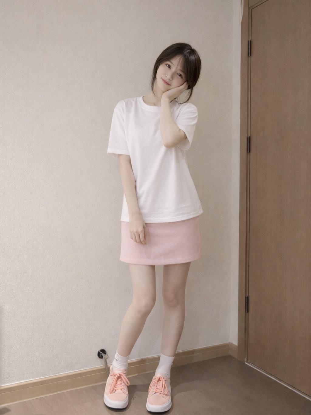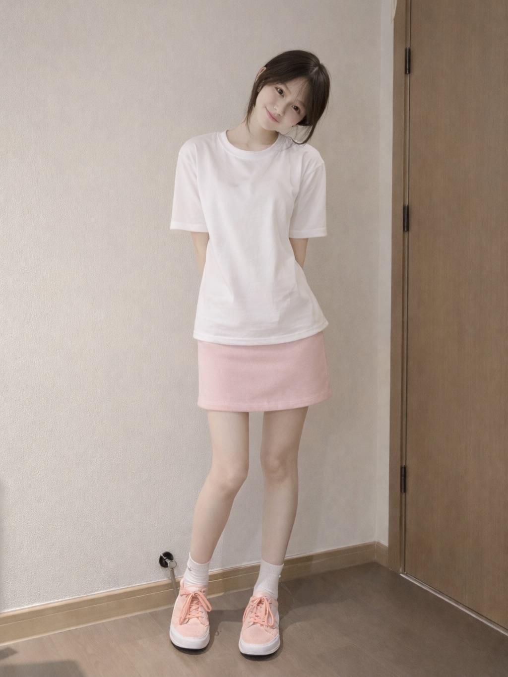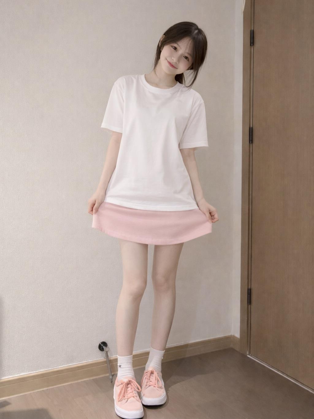 元气少女穿搭指南👗👟,简约白T恤+粉色短裙,清新可爱!🌸💕