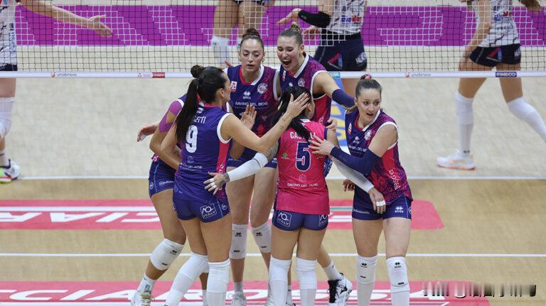 豪门德比日:朱婷 17 分 强力接应飙分 联赛领头羊科内利亚诺直落三局战胜世俱杯冠军斯坎迪奇 意甲 A1 联赛常规赛第二十三轮的重头戏,联赛榜首的科内利亚诺 3:0(43-41、25-22、25-20)战胜紧追不舍的世俱杯冠军斯坎迪奇,巩固了联赛常规赛"冠军"的地位。 这是本赛季两队极其势均力敌的传奇故事的第四章,科内利亚诺 3-1 暂时领先。唯一的失败是在巴西圣保罗举行的世俱杯决赛中,威尼托队成全了托斯卡纳球队历史上第一个世界冠军。 本场比赛,主教练丹尼尔·桑塔雷利派出了二传兼队长沃沃什对位哈克、主攻线朱婷和加比、副攻线法尔和卢比安、德·吉纳罗担任自由人。斯坎迪奇则以对角线接应安德罗波娃对位二传兼队长奥格涅维奇、主攻线斯金纳和波塞蒂、副攻线韦茨尔和恩瓦卡洛尔、自由人卡斯蒂略来应对。 两强相遇勇者胜。第一局双方展开了势均力敌的逐分竞逐,比分罕见了来到 40+。关键的时刻,经验老练的科内利亚诺抓住机会 43-41 关闭了争斗;第二局主队的斗志似乎受到了影响,客队主导了比赛,比分始终压制着主队,25-22 轻取对手;第三局波澜不惊,科内利亚诺牢牢控制着场上局势,比分一路领先(25-20)。 在个人表现方面,哈克砍下 27 分,成为本场比赛得分王。朱婷紧随其后贡献 17 分,加比 11 分;主队安德罗波娃 24 分,斯金纳 11 分。 团队数据,科内利亚诺扣球(62-48)、拦网(9-8)和自失误(20-19)领先主队;斯坎迪奇在发球(8-2)为自己挽回了一点面子。 本场比赛过后,联赛常规赛仅剩三轮,黑豹队将继续停留在佛罗伦萨,于 2 月 10 日星期二对阵佛罗伦萨。之后她们她们将返回韦尔德体育馆,迎接常规赛最后两场比赛:02 月 15 日周日对阵佩鲁贾,02 月 22 日周六晚上对阵皮内罗洛。 斯坎迪奇 - 科内利亚诺(41-43 | 22-25 | 20-25)