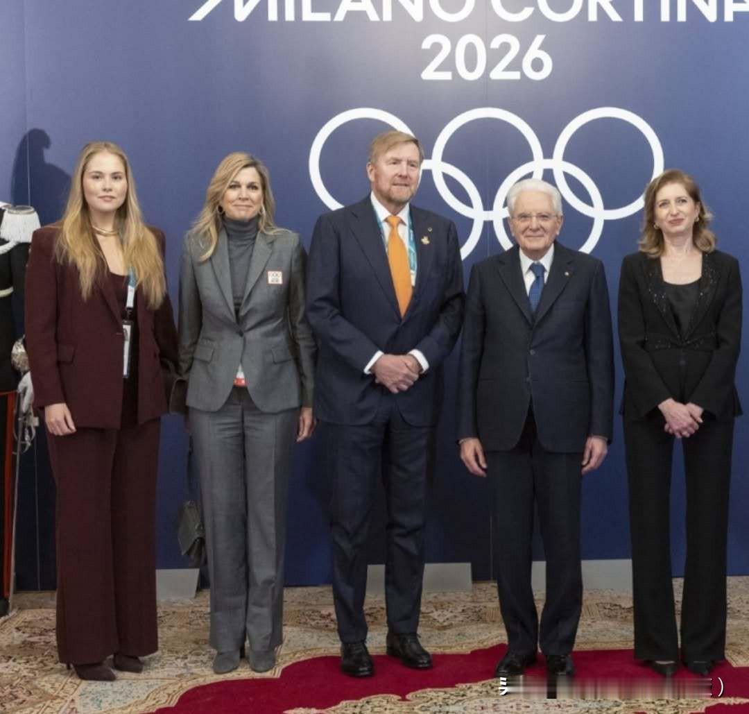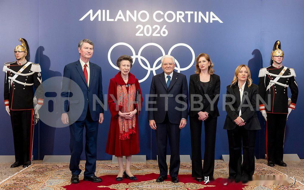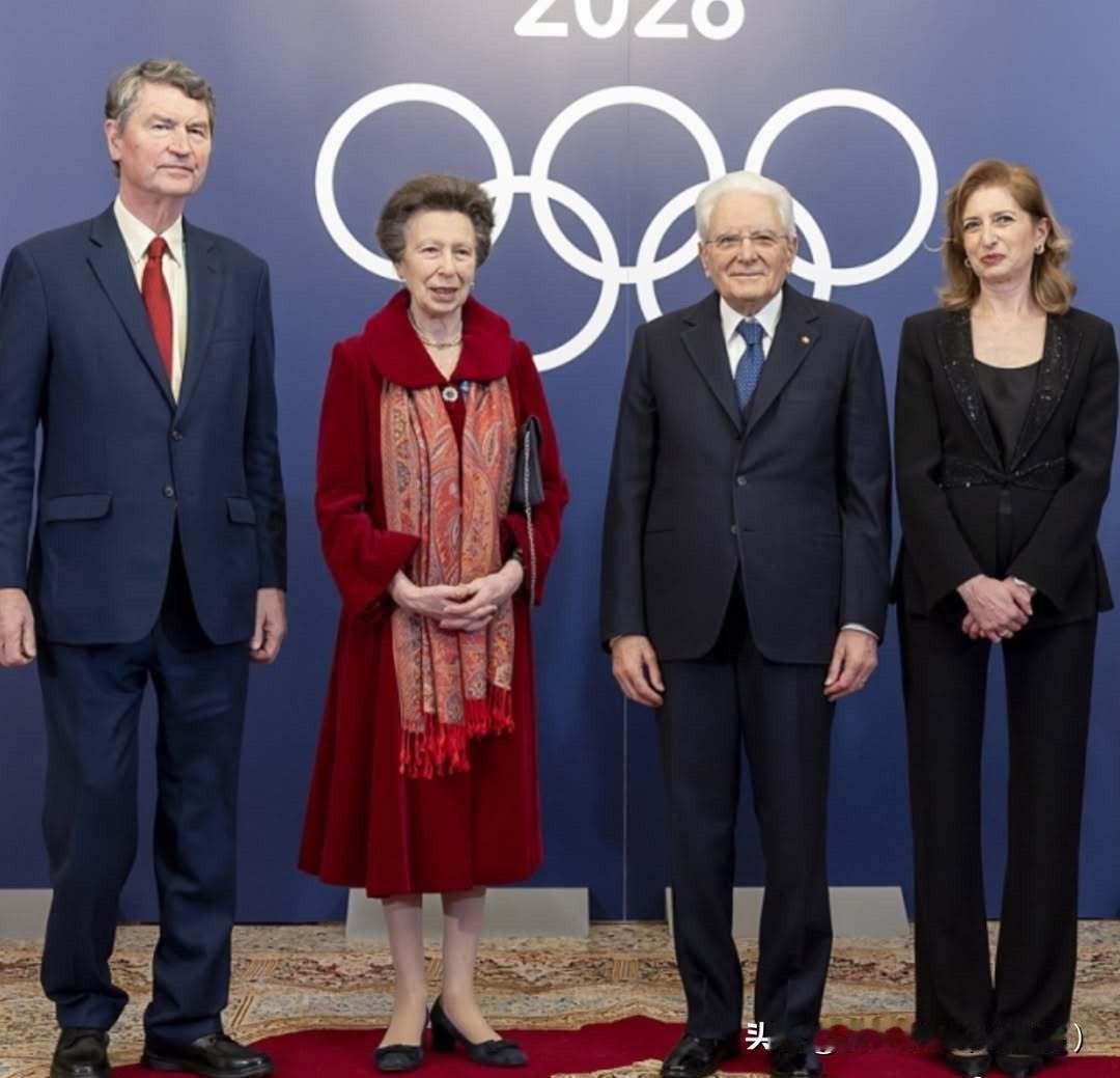 意大利总统和第一女儿,接待出席米兰-科尔蒂纳冬奥会的各国王室!可以看到安妮公主夫