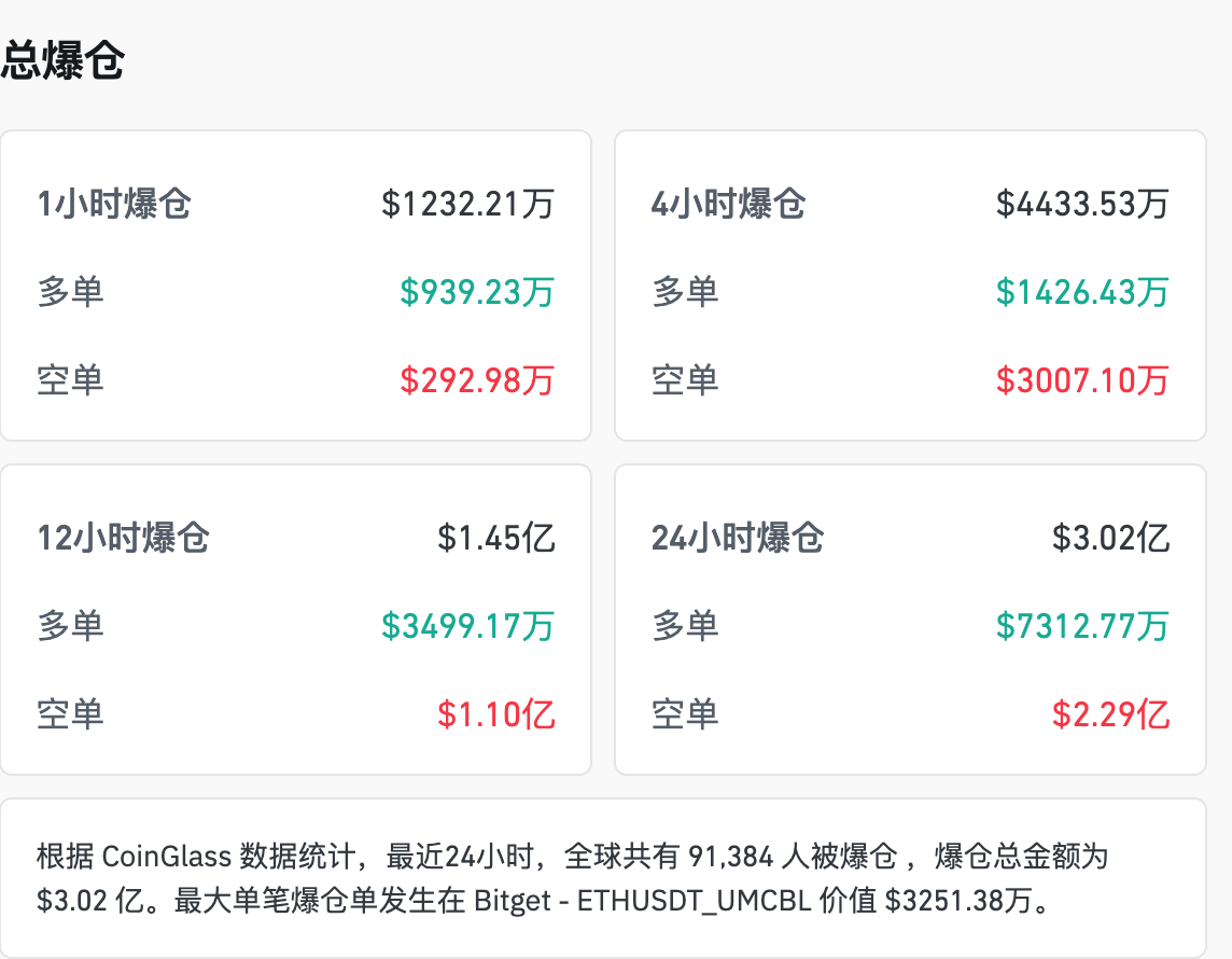 【#比特币大跌后大涨#】#加密货币超9万人爆仓# 2月8日晚,比特币向上触及71000美元关口,过去24小时内涨4.67%。截至发稿,比特币涨至70979美元,过去24小时内涨2.02%。以太坊、泰达币等主要品种均有不同程度上涨。CoinGlass数据显示,最近24小时,加密货币市场共有超9.14万人爆仓,爆仓总金额超3亿美元。2月8日早些时候,比特币、以太坊等加密货币全线重挫,比特币日内一度触及6万美元关口,创16个月新低。
