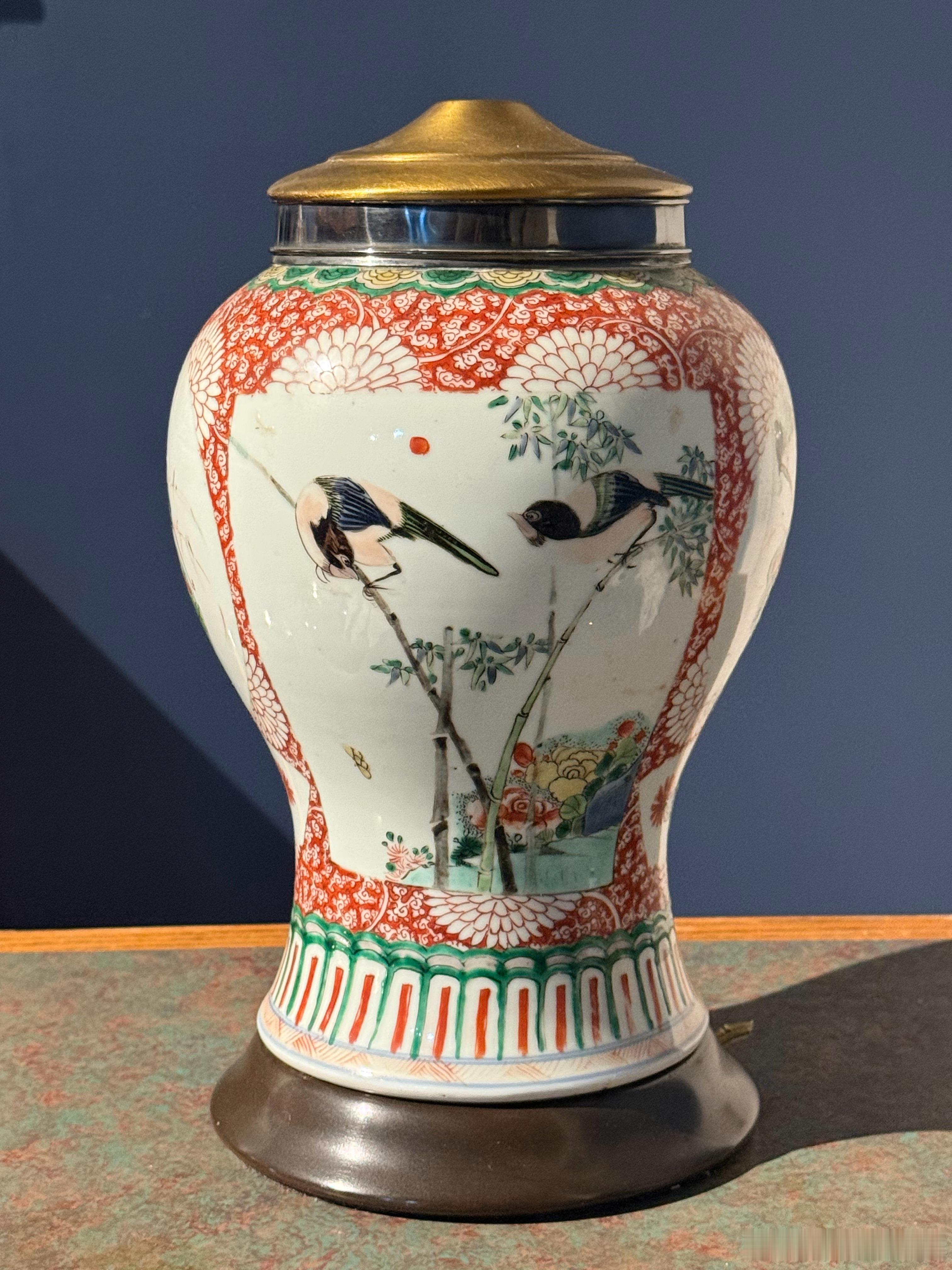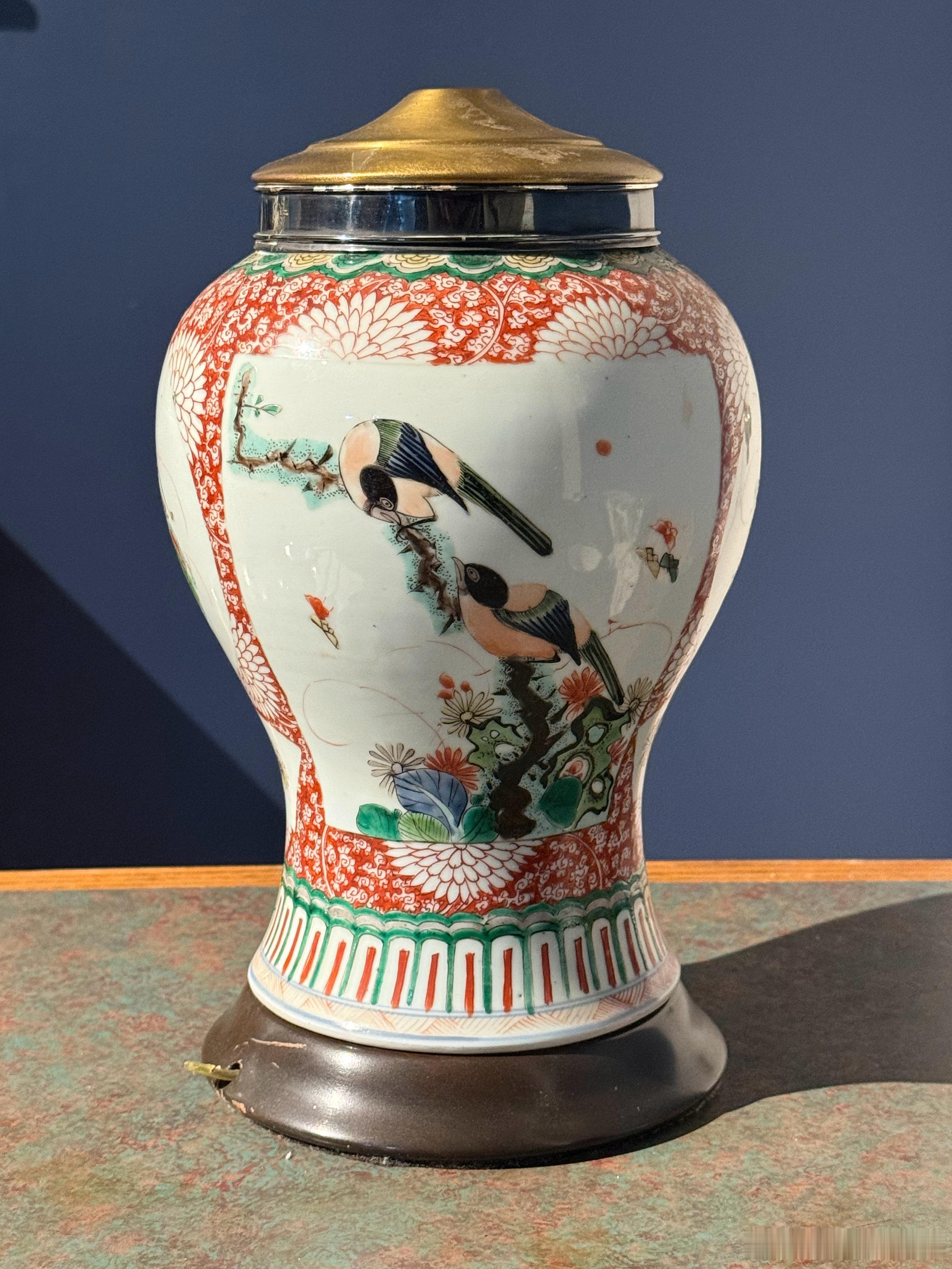这种被美国人改成灯座的花瓶不少见,买来放在家里好多年了,不好意思再当灯座。