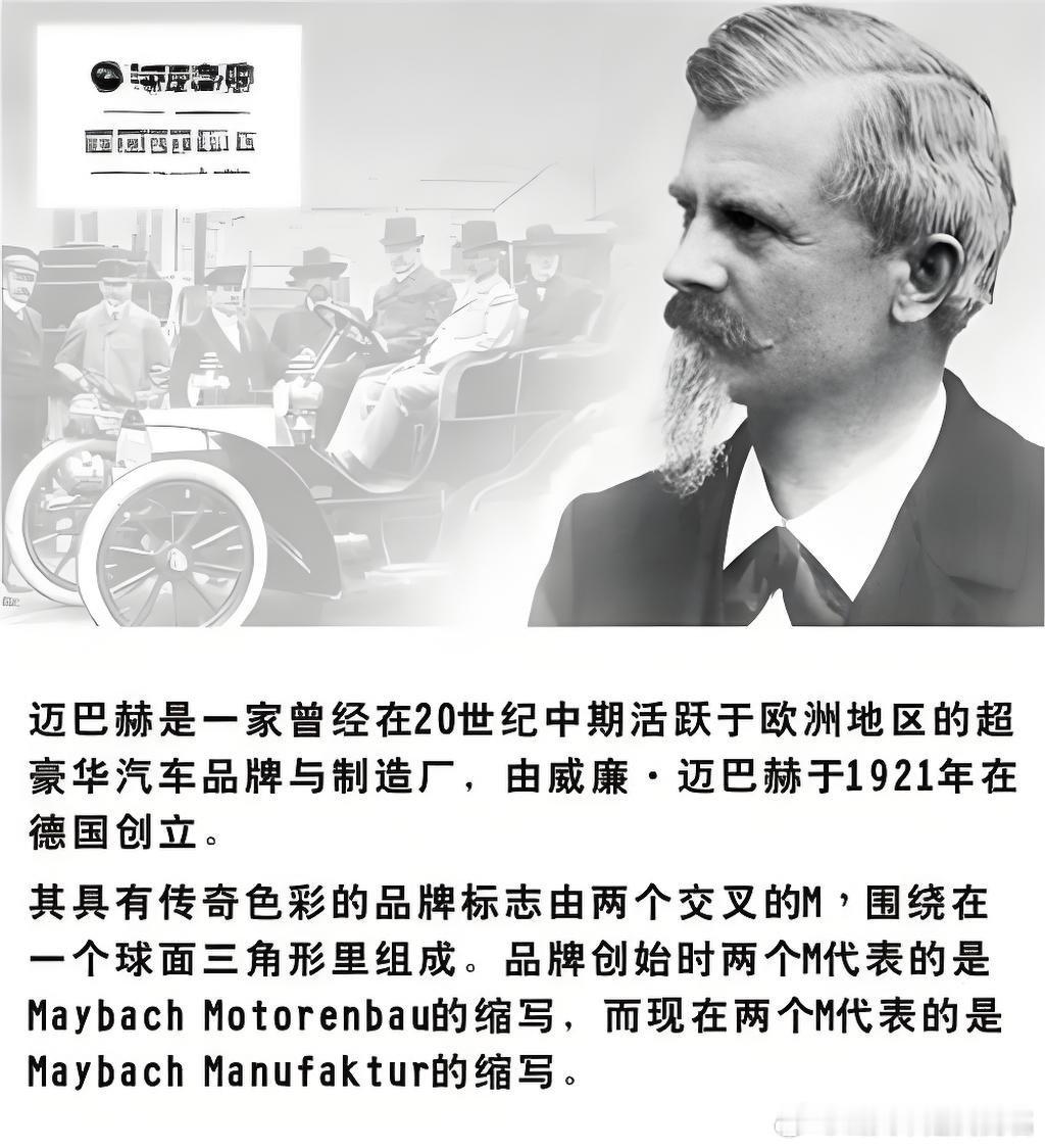 威廉·迈巴赫(WilhelmMaybach,1846年2月9日-1929年12月29日),德国发动机工程师,曾担任戴姆勒机械制造社(今日戴姆勒集团的前身)的首席工程师,也曾参与著名的齐柏林飞船之制造,是德国汽车工业界最重要的先驱人物之一。1919年难舍汽车梦想的威廉·迈巴赫与其子卡尔·迈巴赫(CarlMaybach)共同缔造了“迈巴赫”这一传奇品牌,一个象征着完美和昂贵的轿车。1929年12月29日威廉·迈巴赫在斯图加特逝世。1996年威廉·迈巴赫的名字进入汽车名人堂。