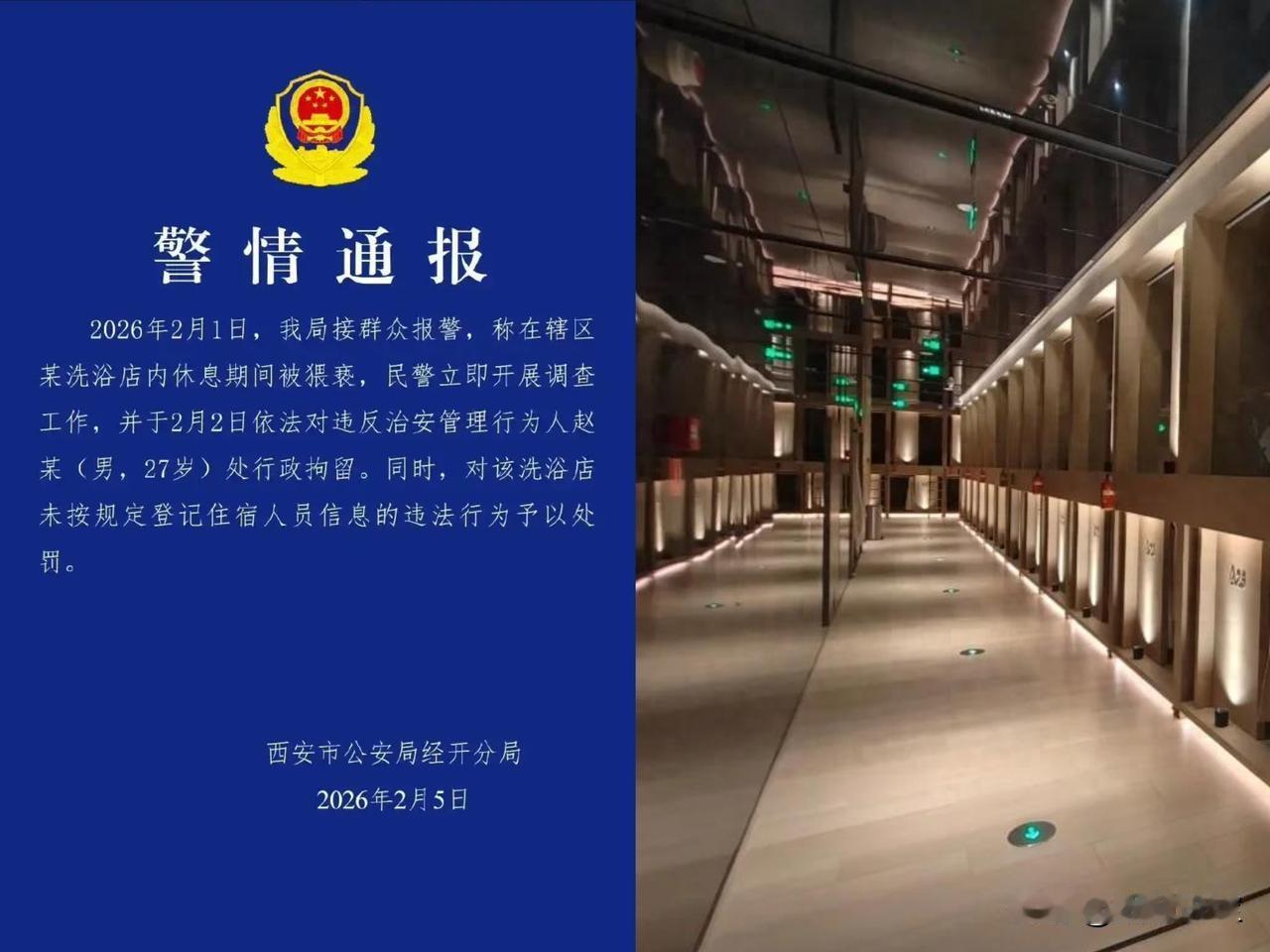 通报终于来了,一家三口去洗浴中心洗浴并留宿过夜,妻子被陌生男子多次猥亵,洗浴中心:拒绝查看监控,不道歉。 一家人花钱消费、安心留宿,本该被妥善保护,却在熟睡时遭遇侵害,更让人难以接受的是,商家从始至终的敷衍、推诿,把消费者的安全当成小事。 很多人去洗浴中心过夜,图的就是方便、省心、安全,商家既然提供留宿服务,就该扛起对应的责任,而不是把客人随便塞到电玩室,门不关、人不看、监控不全,等于把风险直接丢给顾客。 事发后商家的操作更让人失望,拒绝查看监控、不肯道歉,拿隐私当挡箭牌,直到执法部门上门才配合。这种出事先甩锅、不担责的态度,比事件本身更伤人心。做生意赚的是信任钱,连最基本的人身安全都保障不了,谈何服务与口碑。 警方通报里,嫌疑人已被依法行政拘留,商家也因未按规定登记住宿信息被处罚,联合执法要求停业整顿、取消临时卡、规范留宿区域,算是给了受害者一个交代,也给所有同类场所敲响警钟。 这件事最该反思的,从来不止一个坏人,更是行业里普遍存在的安全漏洞。留宿不是摆几张沙发就行,实名登记、夜间值守、完整监控、封闭安全的休息区,都是必须守住的底线。商家不能只想着赚钱,把安全义务抛在脑后,监管更要常态化,别等出事才整改。 消费者在外消费,一旦遇到侵害,别妥协、别忍让,第一时间报警、固定证据,坚决维护自身权益,不要被几张代金券打发。安全从来不是小事,任何场所都没有理由漠视顾客的人身安全。 出门消费遇到过类似的安全隐患吗?你觉得留宿类场所最该做好哪些防护?