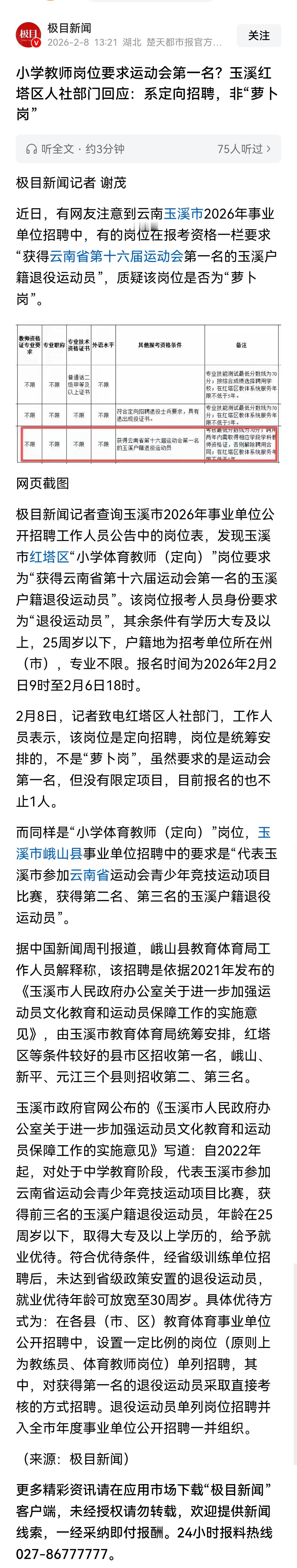 这种招聘,应属于“定向招聘”,即面向获得省运动会第一到第三名的退役运动员,主要解决他们的就业问题,同时也发挥其专长,进学校担任体育教师。