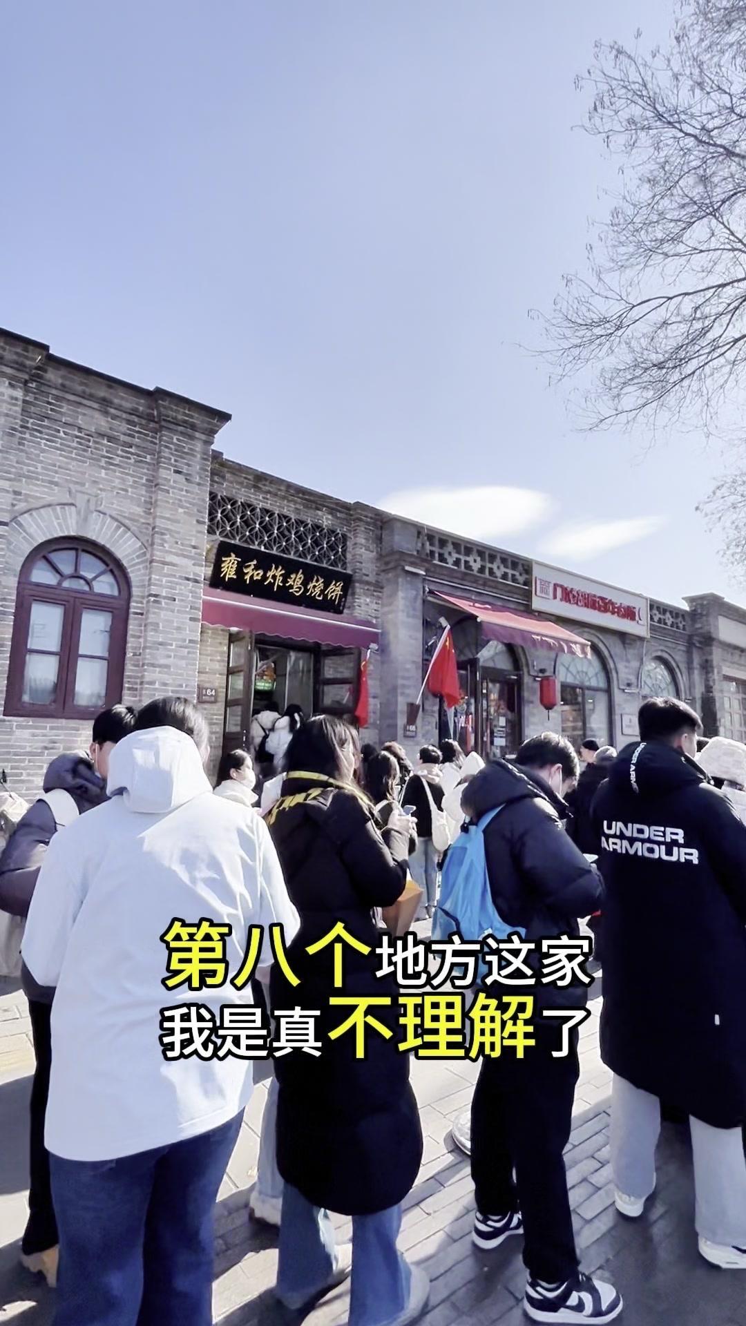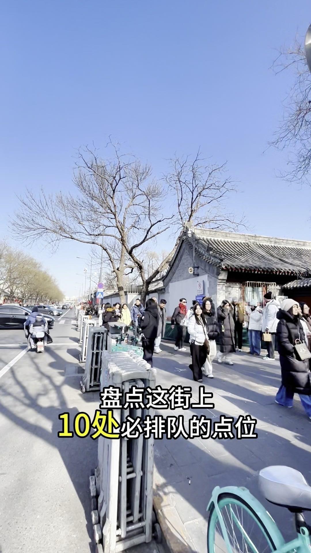雍和宫大街一到过年就热闹非凡,地坛庙会和雍和宫烧香这北京过年最有代表性的两件事都扎堆在这里。从北往南盘点10处必排队的点位,一站式搞定逛吃需求。 1️⃣雍和宫本身:腊八节施腊八粥排到凌晨3点,大年初一烧头香是北京过年保留习俗,许愿讲究心诚,礼数也多。 2️⃣吴裕泰茶庄:茉莉花茶冰淇淋成了寒冬里的热门,数九寒天仍有不少人排队购买。 3️⃣砖儿胡同路口的方砖厂炸酱面:连锁遍地,虽没进去吃过,但炸酱面我只吃家里做的。 4️⃣红花点心局:网红店主打蝴蝶酥,建议别死排队,往南到北新桥有新店几乎不用等。 5️⃣新和小馆:正经北京菜馆,在雍和宫开了近20年,门口常年排队叫号。 6️⃣茶饼斋:无论寒暑都人满为患,排大队是常态,让人好奇其味道是否真有那么好。 7️⃣马路对面的同日升粮行:老国营粮店,主打二八酱黑芝麻酱,老街坊常来打酱,品质不错。 8️⃣雍和宫炸鸡烧饼:一个炸鸡腿却要排很长队,不解其火爆原因,求解释。 9️⃣鸦儿李记:什刹海老店,清真酱牛肉、烧饼、糖火烧是招牌,最近上了元宵,老人常来排队买。 10️⃣烤肉刘外卖窗口:排队买羊肉串,与街对面烤肉宛都是老北京炙子烤肉地道京味特色。 过年逛雍和宫,照着这份名单逛就够了,都是从早到晚排队的店~