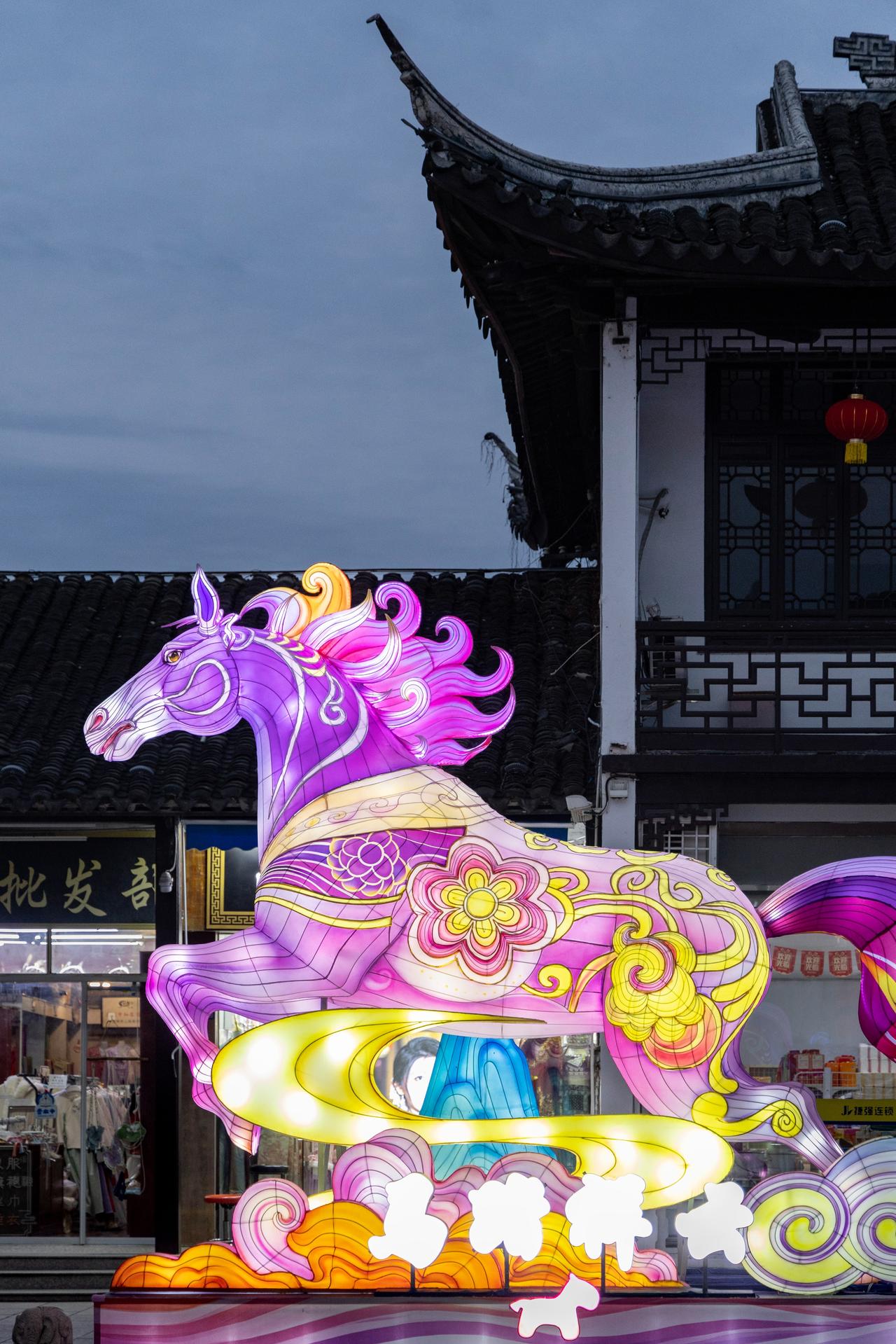 以灯为马,夜游周庄!乘摇橹船穿行灯海,看马灯映水、桨声传情,在江南水乡赴一场马年的灯火之约~