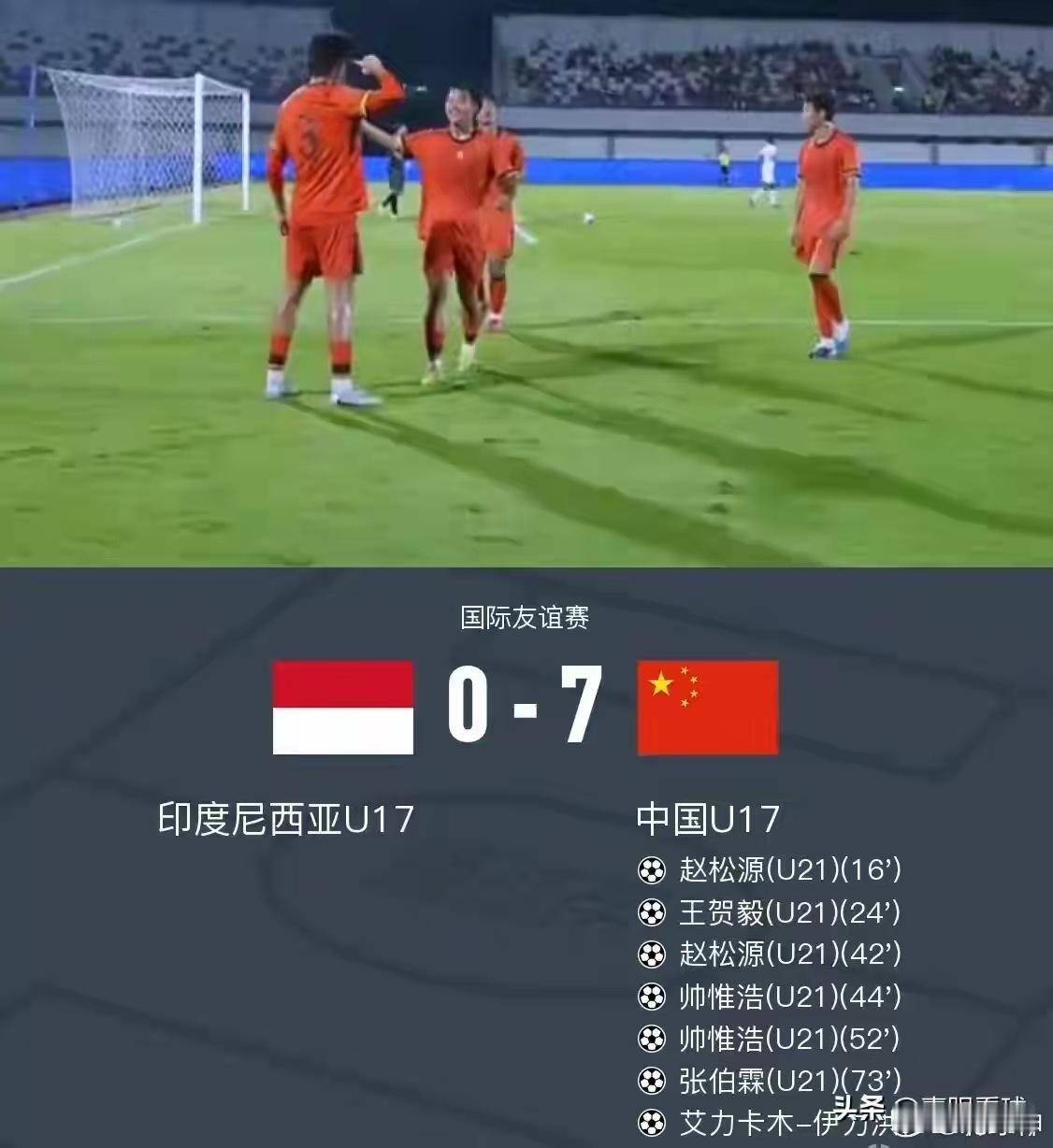 U17国足打亚洲二流,都是碾压局。印尼参加了上届世少赛,是标准的亚洲二流球队,但被半套主力的U17国足打了7比0。U17国足的绝大多数主力球员都在欧洲踢球,没有参加这场热身赛。今年5月的U17亚洲杯,U17国足的旅欧球员将全部回归,很难想象全主力出战的U17国足将强到什么地步。