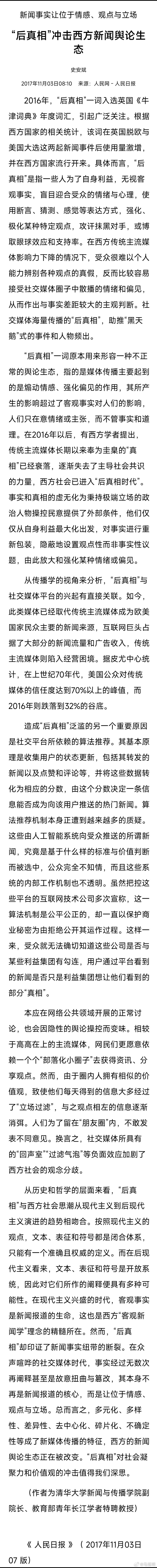 人民日报刊文警告,真相不容消解,理性不可缺位,流量不能凌驾良知。面对信息碎片化、舆论情绪化,主流媒体与公众都应守住底线:用事实驱散迷雾,用理性引导情绪,用权威信息破除谣言。