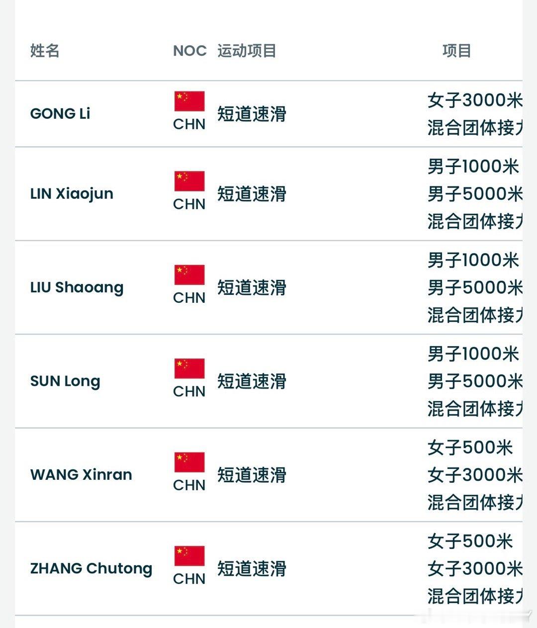 混合团体接力18:59 1/4决赛 19:34 半决赛20:03 决赛参赛运动员:公俐 王欣然 张楚桐 林孝埈 刘少昂 孙龙