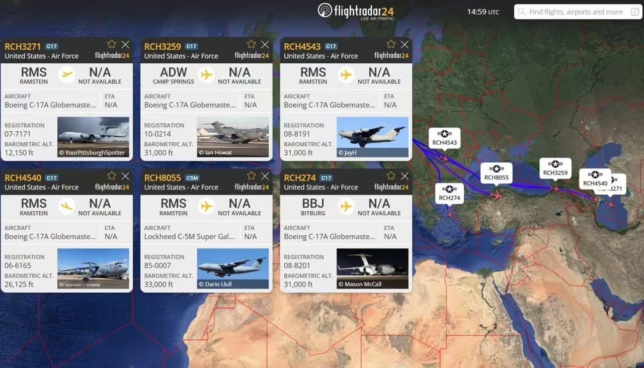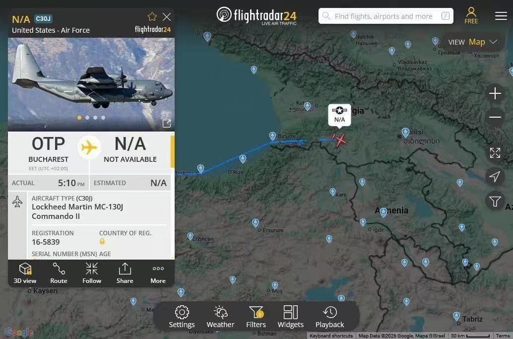 根据追踪数据显示,这些飞机降落在亚美尼亚和阿塞拜疆,因为美国高官将于下周访问巴库和埃里温。