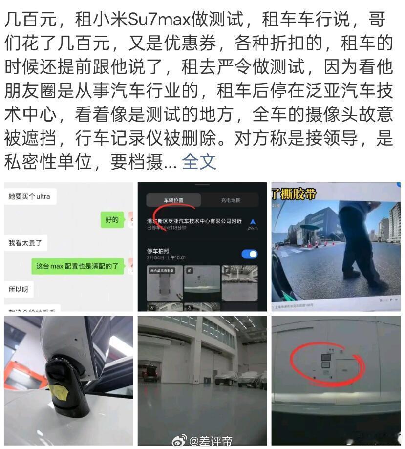 租车公司都有规定,车子是不能拿去做测试的,但是这家租车行就遭遇了这种事,小米SU7被拿去做了测试,某神仙友商在测试的时候贴住了车子的摄像头,还删掉了行车记录仪的视频,后来还不承认进行了测试,就很有内味儿。根据我的认识,欧美车企在进行竞品车型的测试的时候,都是正经买来的车子,是自己买的,那就随便折腾。但是像国内这种车企的搞法,只能说太不地道了。而且这个标题起的,说得好像就是小米去租车搞测试了一样?新闻学魅力大放异彩啊~小米租车测试引争议