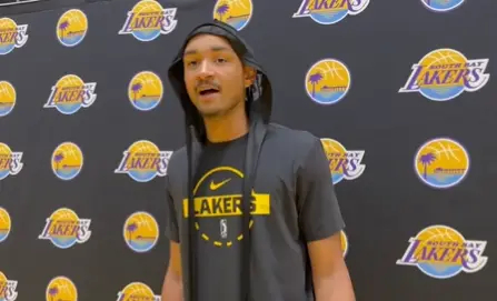 “科比·布莱恩特显然是我最喜欢的球员,看到他的名字挂在墙上,看到他的照片,感觉很棒,能穿上紫金战袍也很酷。”