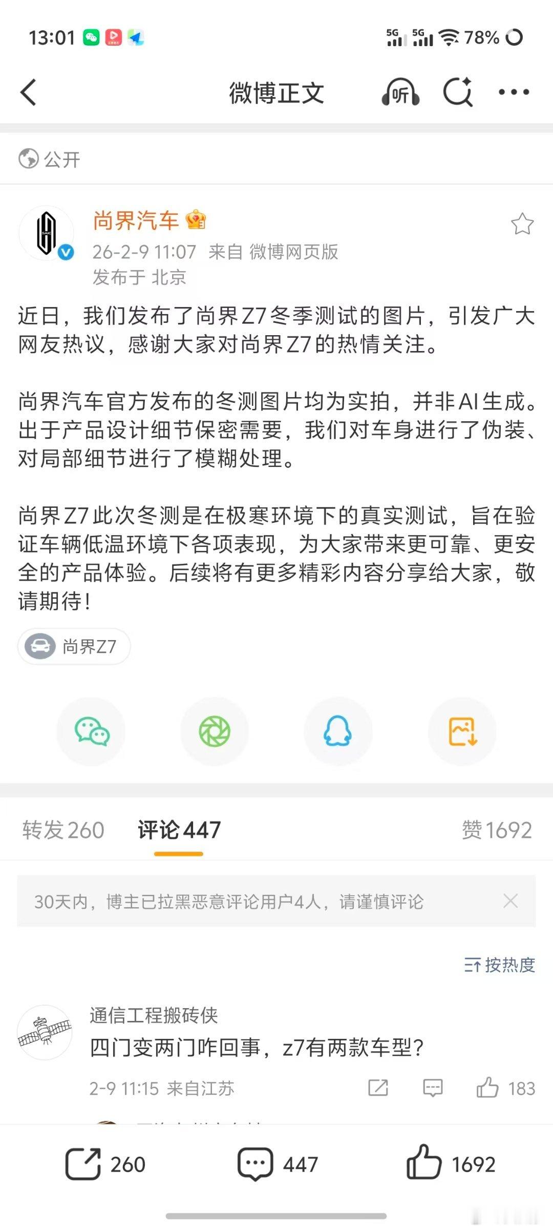 有一说一,我最近那条华为的视频让我见识到了喷子的夸张我一个ota内容解读,骂了我上千楼,太可怕了,我让运营去看是不是投流投到黑子窝去了……这特么冬测视频的图现在也能被黑?这到底有啥好ai的…车企绝不差这点钱,更别说华系了尚界汽车辟谣冬测图片为ai生成大v聊车