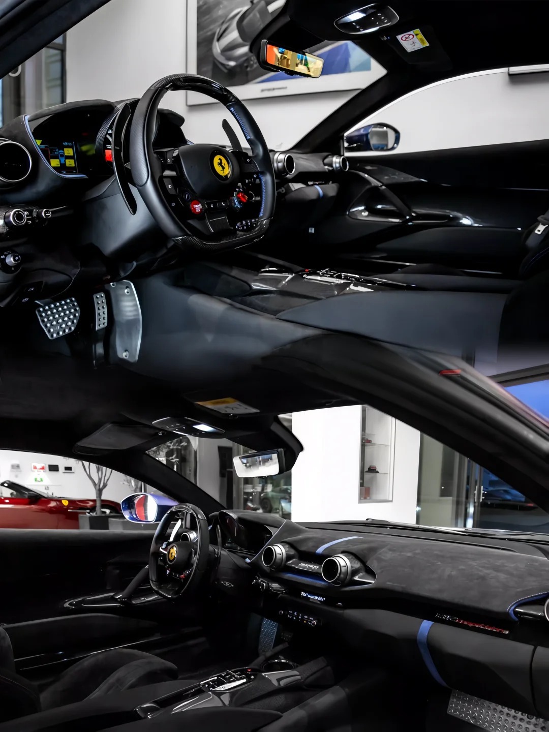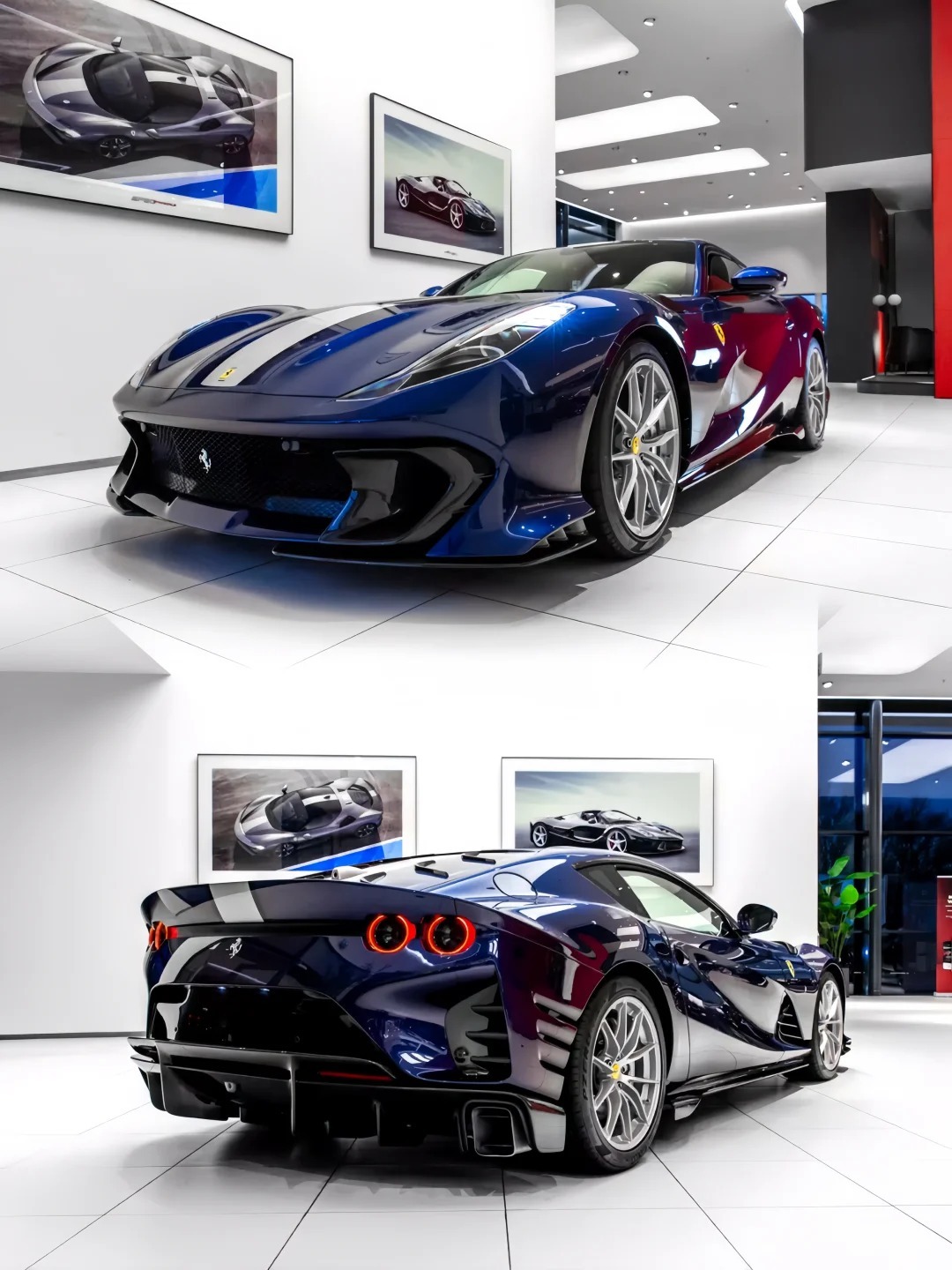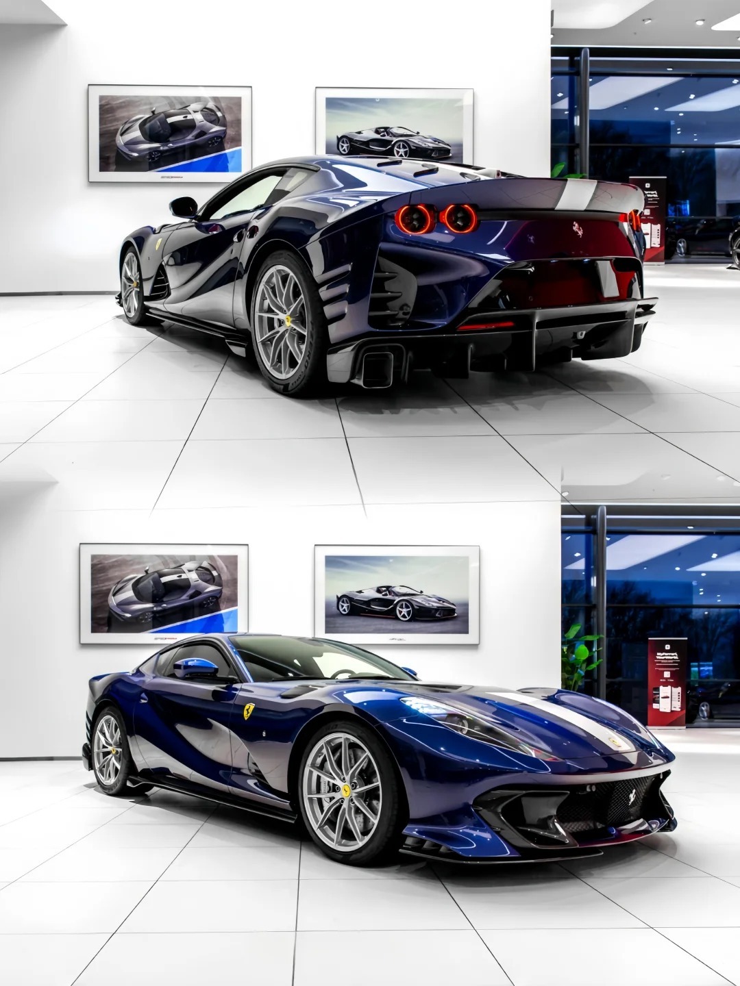 好车分享 Ferrari 812 Competizione,环法蓝这个颜色放在法拉利上真心漂亮,尤其搭配素雅的银色轮毂和银色卡钳,很完美。