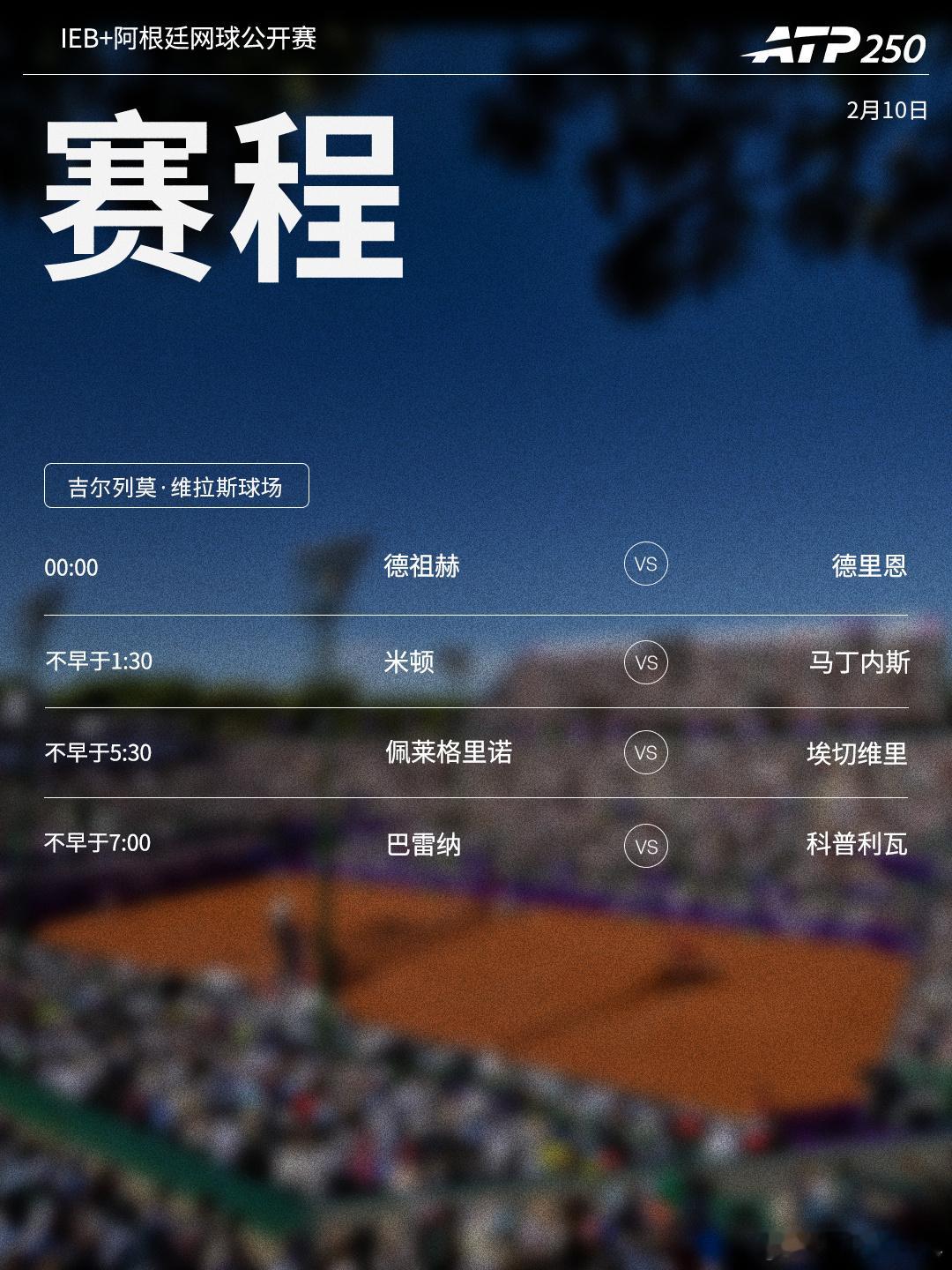 ⭕️ ATP250IEB+阿根廷网球公开赛 📍布宜诺斯艾利斯🎾埃切维里、马丁内斯领衔