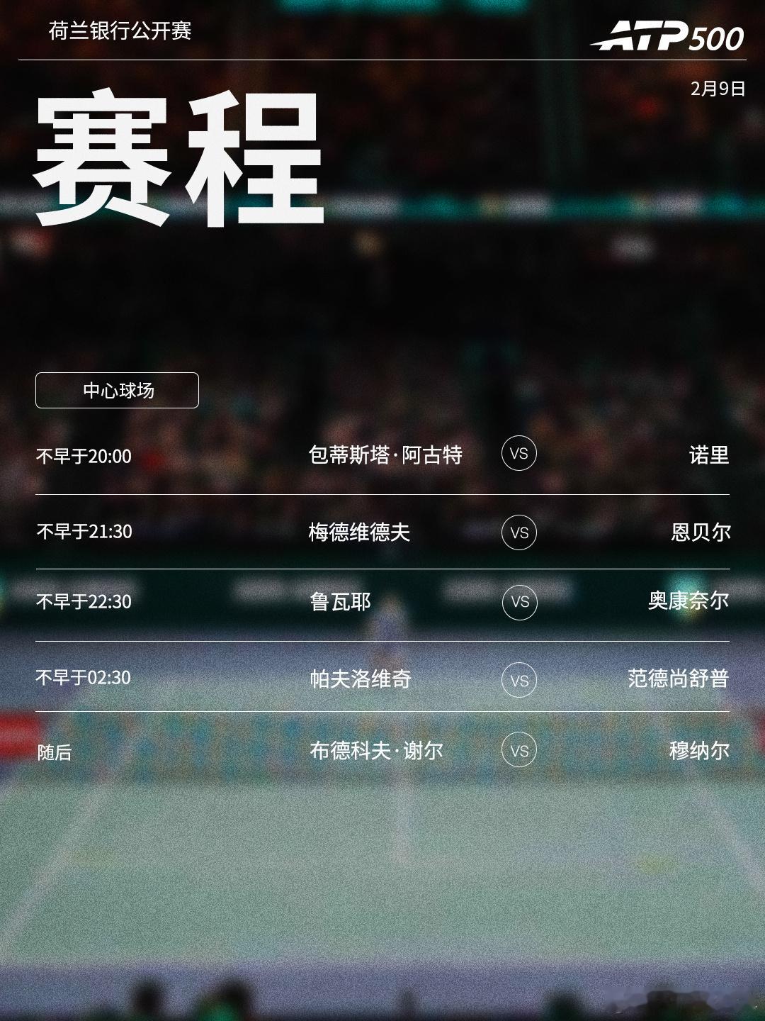 ⭕️ ATP500荷兰银行公开赛 📍鹿特丹🎾梅德维德夫迎战恩贝尔,诺里、范德尚舒普亮相