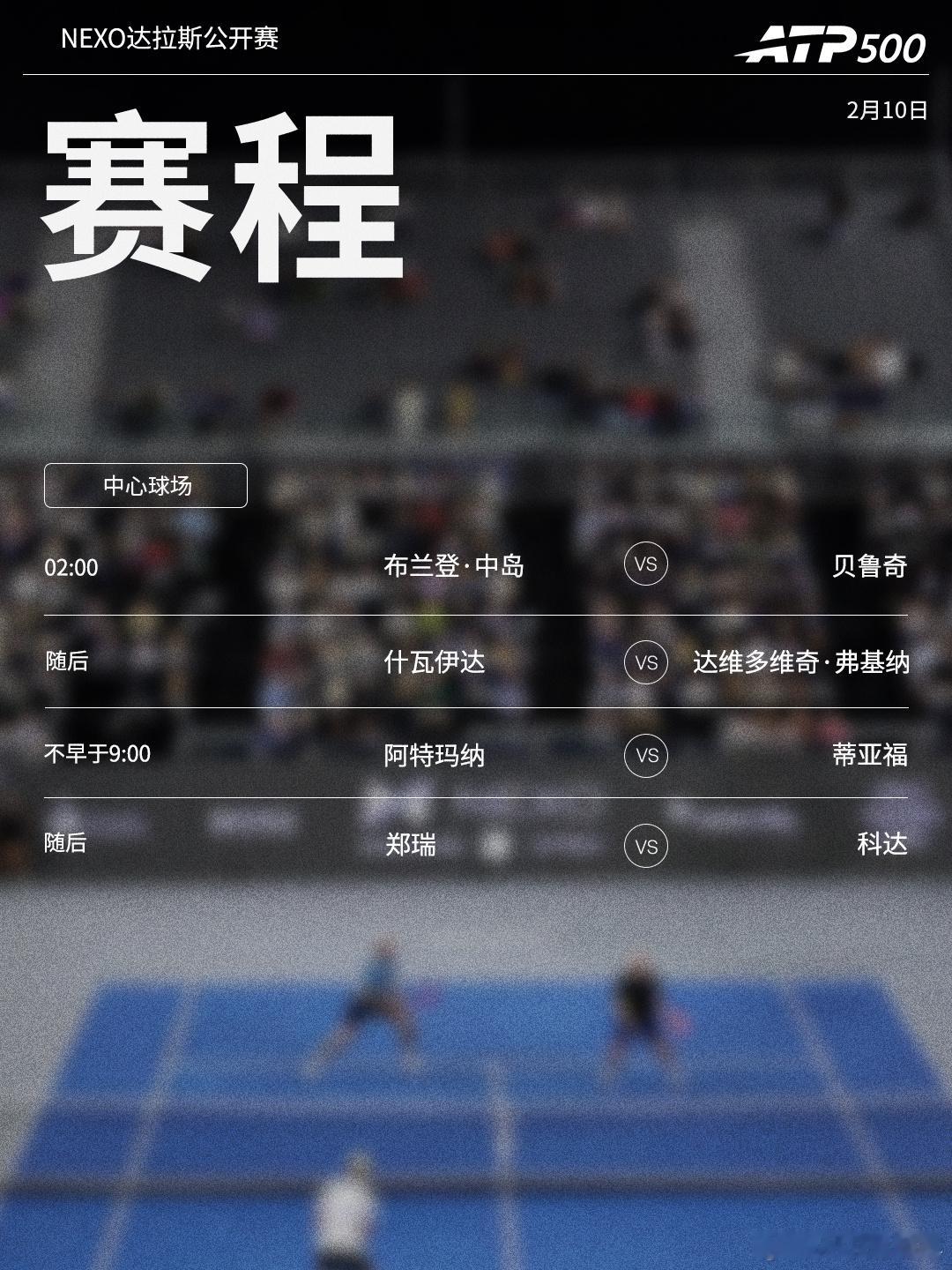 ⭕️ ATP500Nexo达拉斯公开赛📍达拉斯🎾达维多维奇·弗基纳、蒂亚福出战,郑瑞再战科达