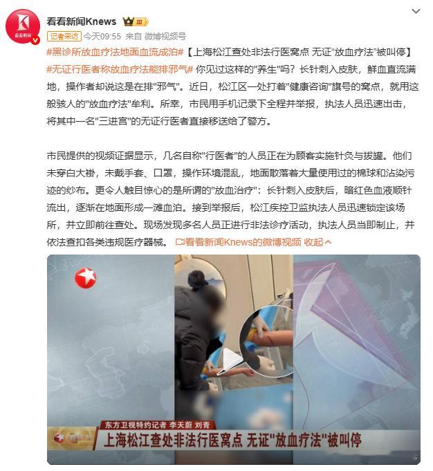 黑诊所放血疗法地面血流成泊上海疾控专家指出,正规放血疗法需严格消毒和精准穴位操作