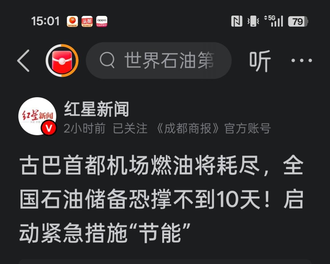 听说古巴石油即将告罄,心中很是震惊了一下。这可如何是好?古巴那可是美洲唯一的反美堡垒,也是哈瓦那美妙海滨景色的所在,老人与海那充满斗争精神的圣地。没有燃油,不仅国际航班要停飞,圣地亚哥的渔船恐怕也不能出海。前一阵子古巴粮食危机,有人捐赠了很多大米,不知道这次是否有人给古巴捐赠石油?或者捐赠成品燃油也好啊。不要大惊小怪,如果我有大量的原油或者成品油,说不定我也会捐赠一些给古巴,你说呢?。