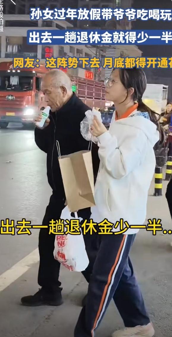 孙女放假了,带着爷去逛街。 爷孙俩一路走,一路买,一路吃。 孙女能有什么坏心眼呢?只不过是嘴馋了点,见了好吃的就买。 爷爷当然乐意埋单。 别看儿子整天笑爷爷是瓷公鸡,在孙女面前可大方了。 爷爷说,只有陪孙女逛街,才吃到那么多好吃的东西。 网友说,出去一趟,爷爷的退休金就得少一半。照这阵势,到月底爷爷就得开通花呗。