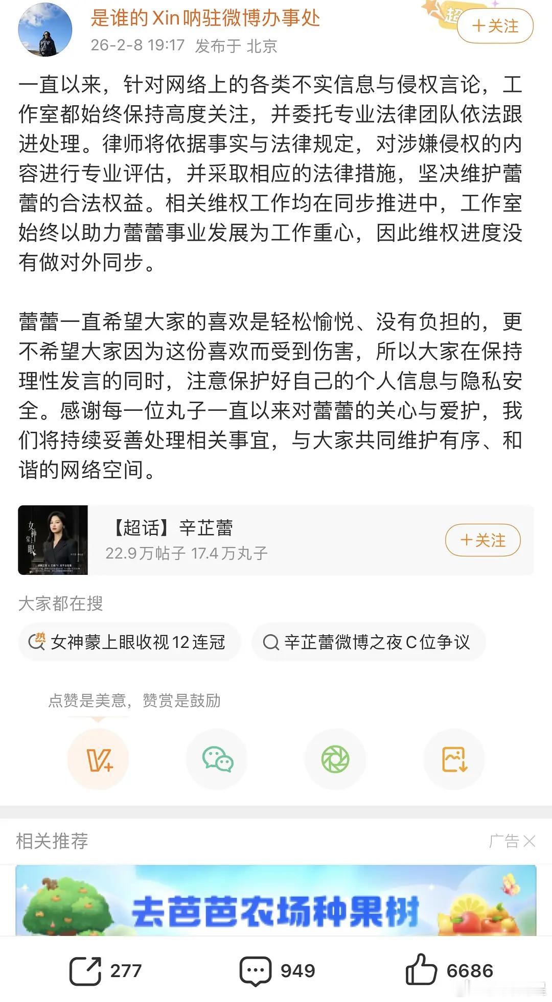 辛芷蕾粉丝开始向微博之夜维权,也是支棱起来了…