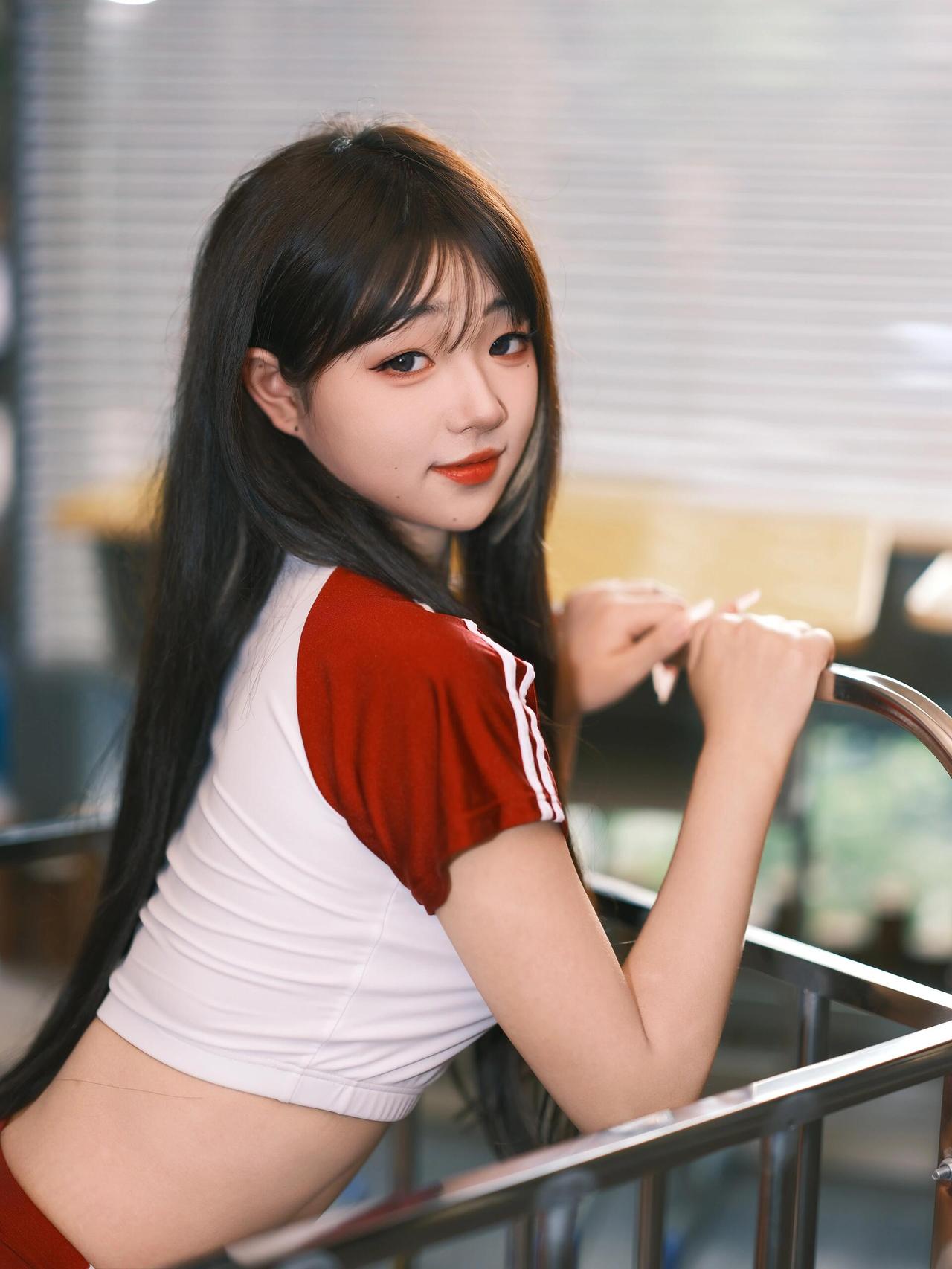 短款运动衫+蓝白短裤,元气腰线太吸睛