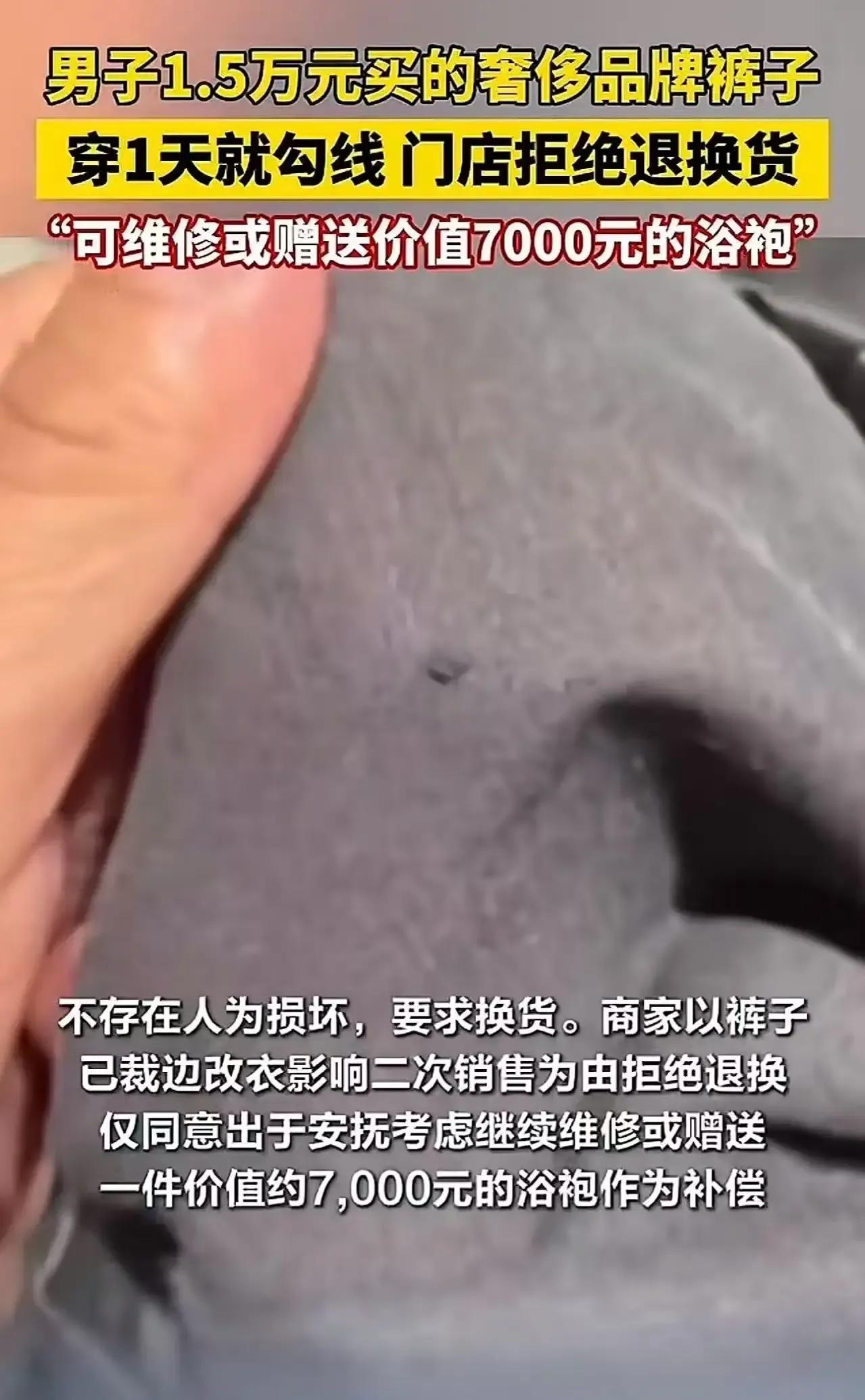 花1.5万买条裤子,结果才穿一天就勾线了,这究竟是土豪的任性,还是商家的套路?近日,陕西西安一男子就遭遇了这样的闹心事。 据了解,这位男子在西安某高端商场,花费1.5万购买了一条看似品质上乘的裤子。然而,令人意想不到的是,这条裤子仅仅穿了一天,就出现了勾线的情况。男子对此感到十分不满,随即联系商家要求退换货。但商家却坚称,裤子不存在质量问题,并表示可以接受第三方质检。这一回应让男子更加气愤,他质疑道:“15000的裤子就这样的质量?”此事一经曝光,立刻引发了网友们的热议。有网友表示:“我15块买的裤子也不会一天勾线啊!”还有网友调侃道:“这裤子是不是穿一次就报废,得当传家宝供起来?”面对网友们的质疑和调侃,商家却依然坚持自己的立场,这不禁让人对高端消费品的品质产生了更多的思考。 花大价钱买的东西,却得不到应有的品质保障,这确实让人难以接受。希望商家能够正视问题,给消费者一个合理的解释和解决方案。大家对于这件事有什么看法呢?快来评论区留言讨论吧!泼墨裤子 水洗工艺裤子 西安逛街买衣服 西裤勾线