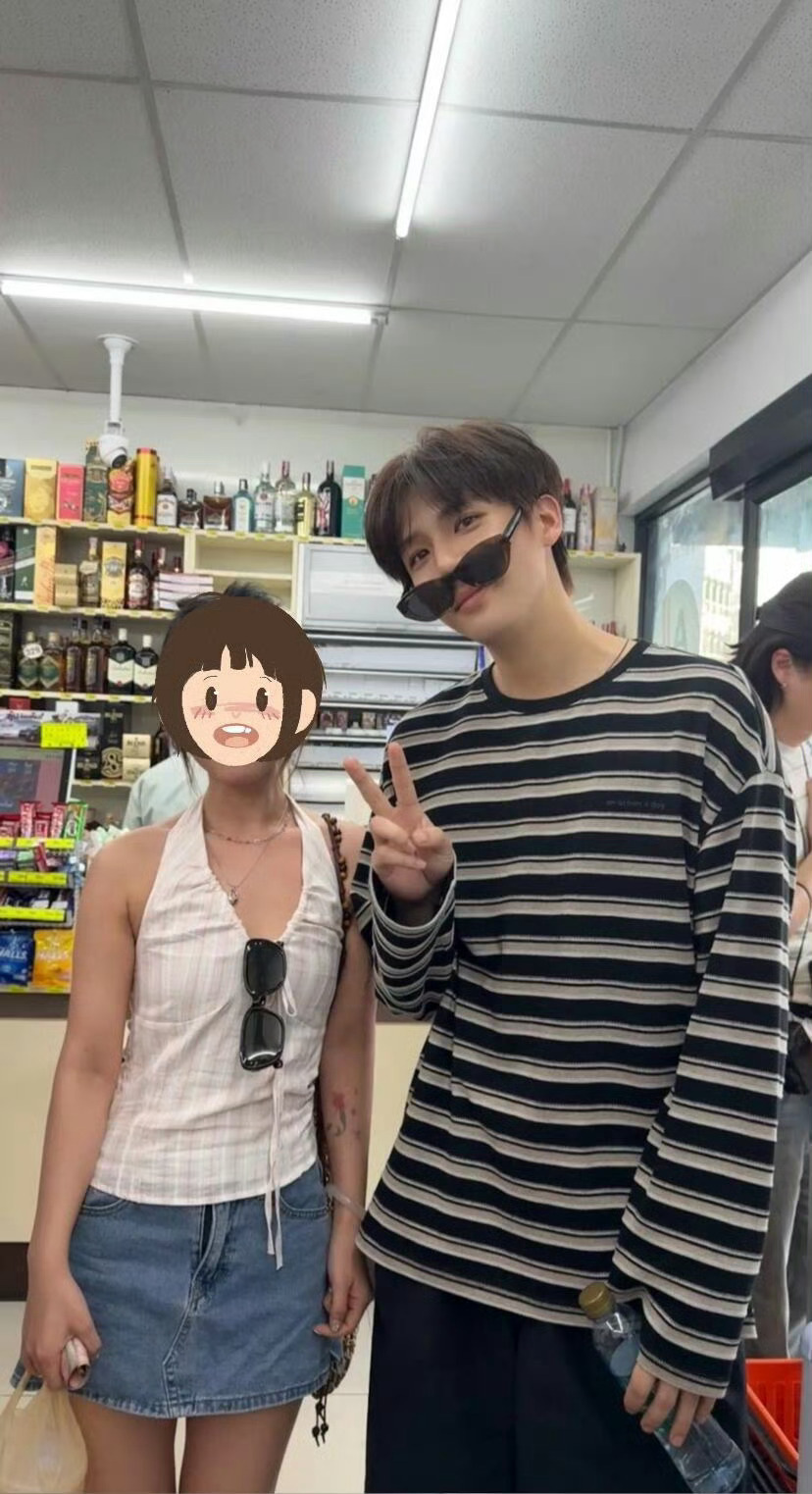 张天爱跟素人合影,胯真的好宽,大宅院似的