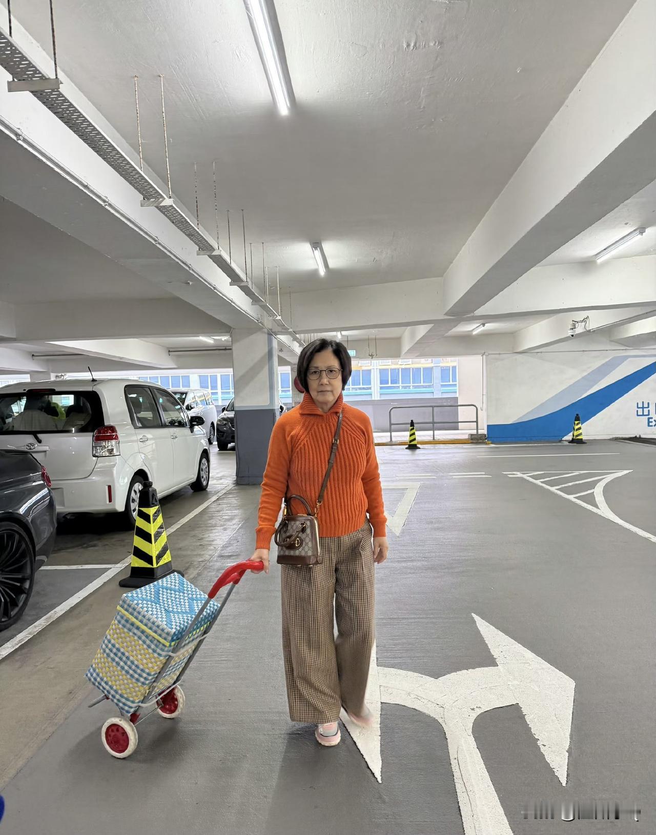 汪明荃出门采购年货,这个手推车很接地气,家有老太太的基本都配有这样的买菜推车。