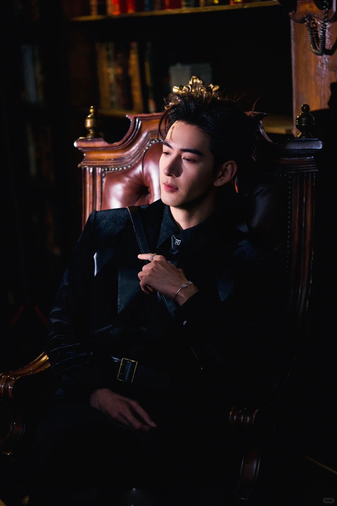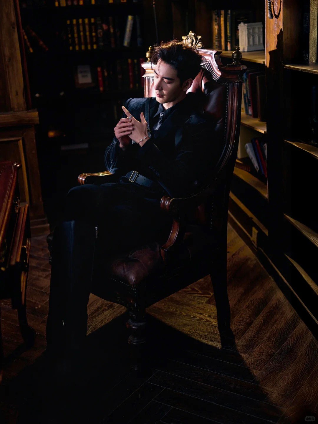 演员身着中国国际时装周 中国知名高定设计师陈野槐品牌GRACE CHEN MENSWEAR2025春夏高定系列“暗夜幻影”黑丝绒套装,于步履间流转深邃叙事,矜贵儒雅。 陈星旭 新国潮我定义 中国国际时装周