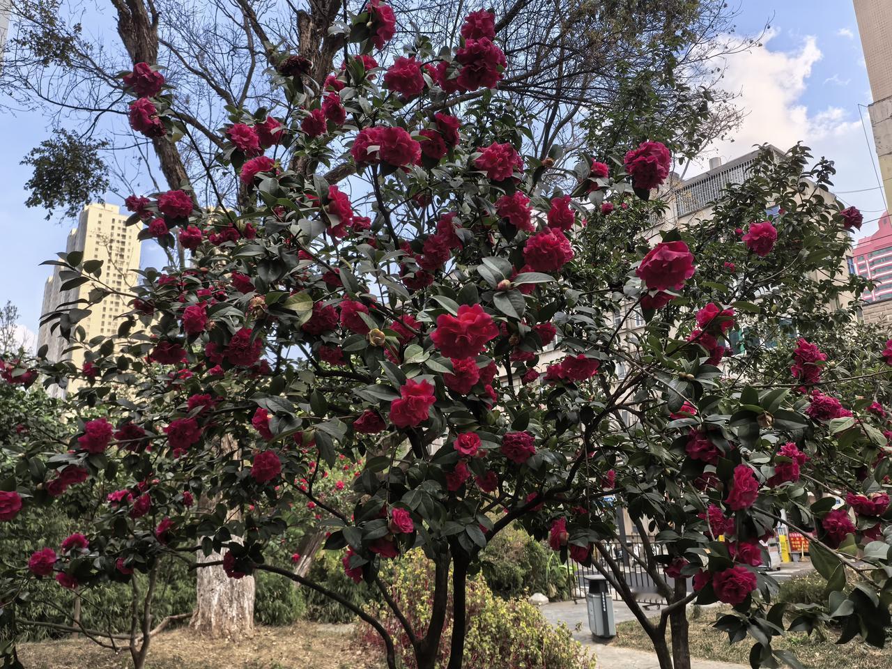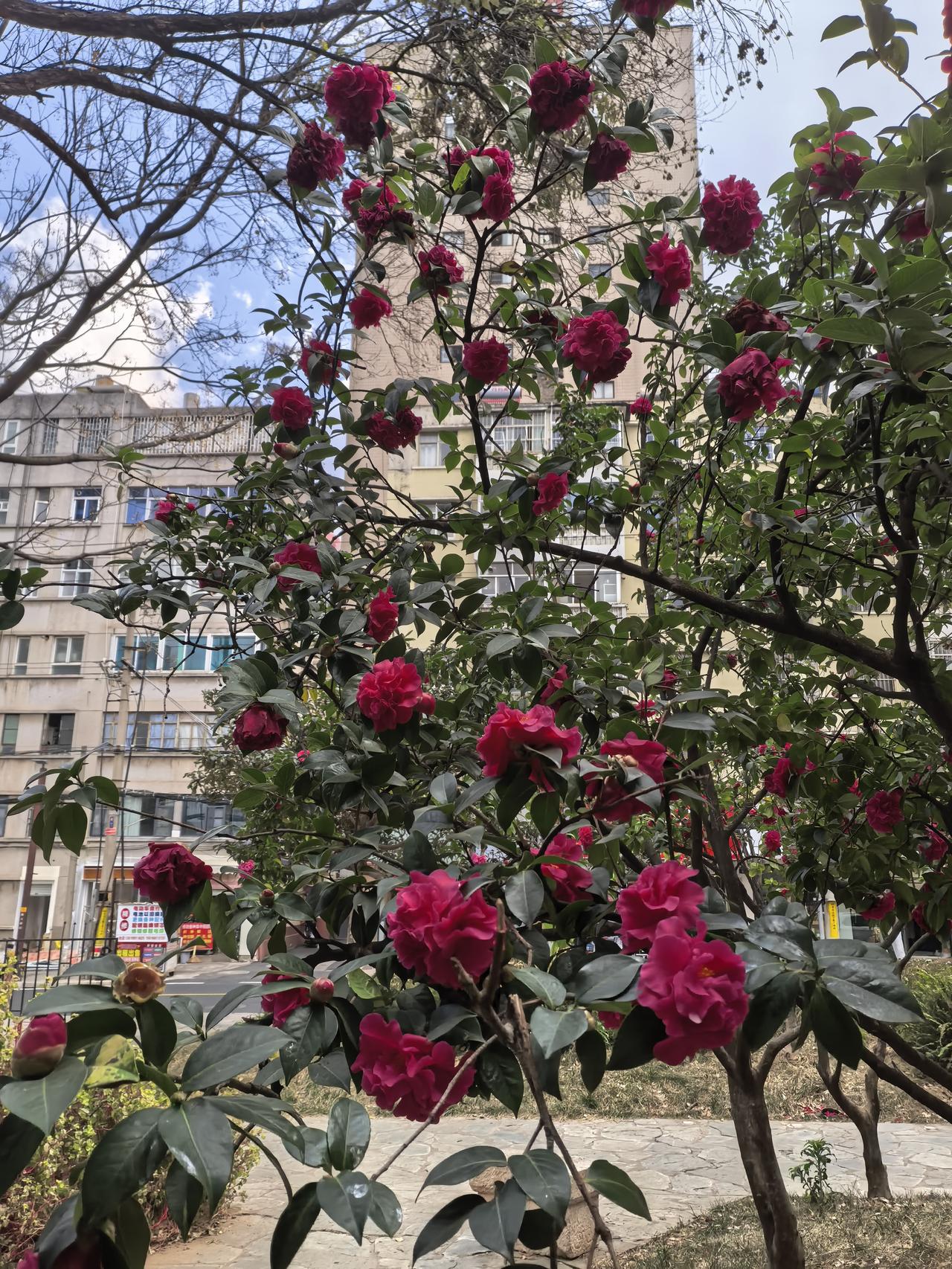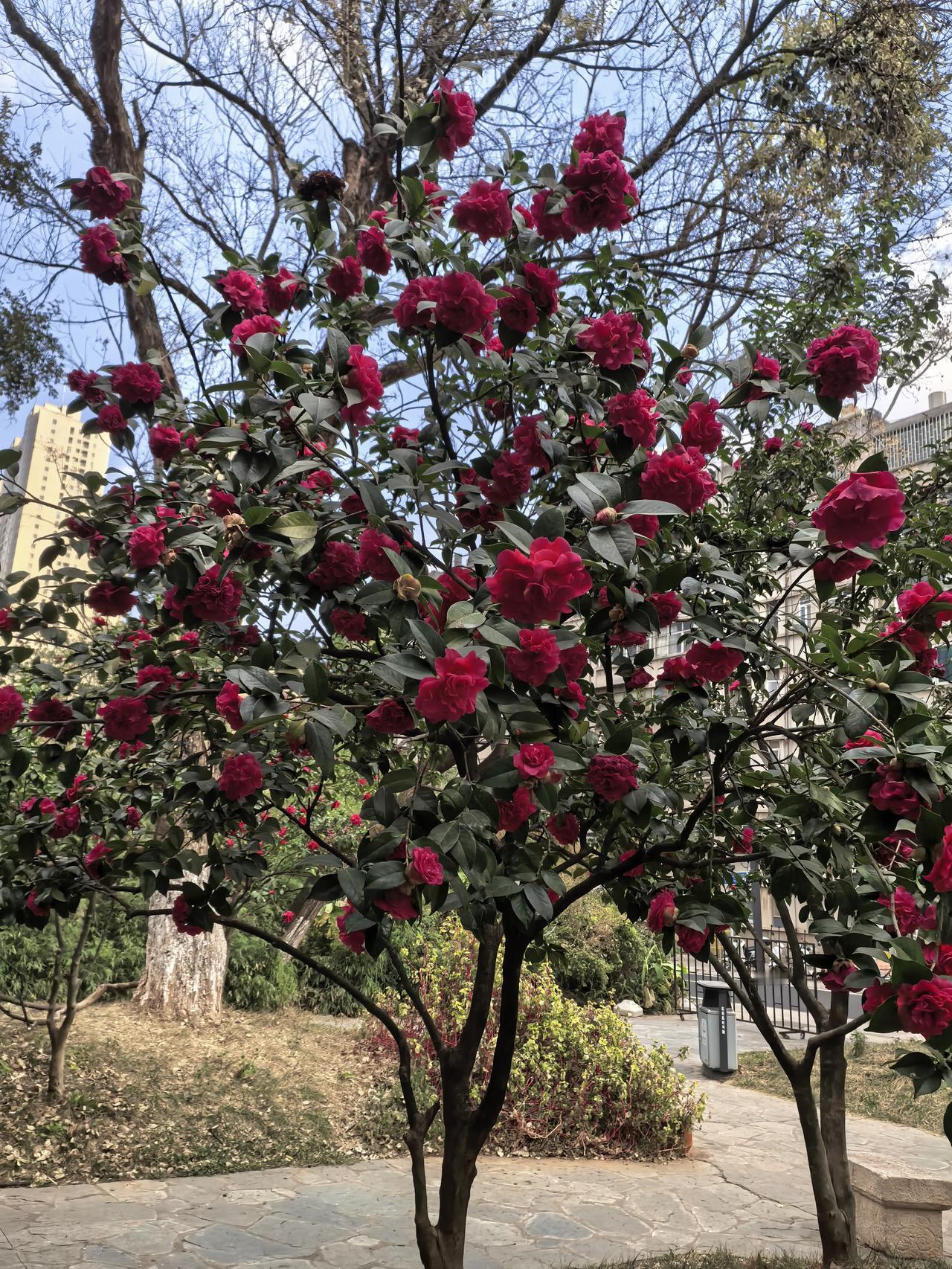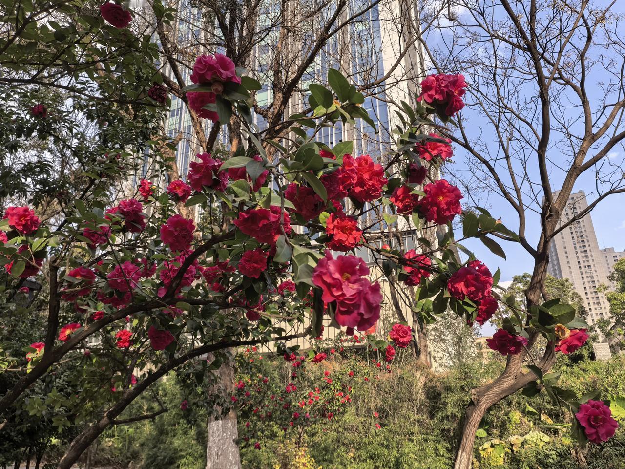 昆明北京路上的这个茶花🌹公园的茶花这几天盛开了,在恒隆广场边上!