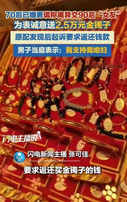 2月7日发布,辽宁锦州,女子认识一男子,男子说自己离婚了,和女子确定了恋爱关系,并花25000余元给女子买了一只黄金手镯。可没过几天,男人妻子就找到女子,说他们夫妻只是分居,没有离婚,要求女子把金镯子还回去。女子称自己也是受害者,只愿意返还一半。可男子却说:我不愿意承担另一半,我花的就是夫妻共同财产,我媳妇让我往回要,我听我媳妇的。法院判决让女子欲哭无泪。 2 月 7 日,辽宁锦州的一起民事纠纷成了当地街坊邻里茶余饭后的热议话题,一位 90 后女子本以为遇到了真心相待的伴侣,收下对方送的黄金手镯,没曾想这份看似沉甸甸的 “心意”,竟成了一场官司的导火索。 2025 年 7 月的一次偶然相遇说起,这位 90 后姑娘在锦州本地一家常去的棋牌室里,认识了 1972 年出生的男子。 相处的日子里,男子表现得十分成熟体贴,日常嘘寒问暖不说,姑娘的小需求他也总能记在心里,事事有回应的态度,让涉世未深的姑娘渐渐动了心。 一来二去,两人的关系迅速升温,没过一个月就正式确定了恋爱关系,为了表达自己的真心和相处的诚意,男子特意开车带着姑娘去到锦州当地一家知名金店,让姑娘亲自挑选心仪的首饰,最后选定了一只足金手镯。 男子当场通过手机扫码的方式,支付了全款,还亲手将这只亮闪闪的金镯子戴在了姑娘的手腕上,说这是定情信物,让姑娘踏踏实实跟自己处。 姑娘那时候满心欢喜,只觉得自己遇到了靠谱的良人,可这份幸福感仅仅维持了六天,就被一通陌生电话彻底击碎。 电话那头的女人自称是男子的合法妻子,语气坚定地告诉姑娘,她和男子根本没有办理离婚登记,两人依旧是受法律保护的合法夫妻。 这通电话如同晴天霹雳,让姑娘瞬间懵在原地,女子表示男子送给姑娘的那只金镯子,用的是他们二人的夫妻共同财产。 男子擅自处置共同财产的行为,既没有经过她的同意,也严重损害了她的合法财产权益,因此要求姑娘立刻返还这只金镯子。 得知真相的姑娘又气又委屈,她怎么也没想到,自己一直以为的单身男友竟然早已成家,自己稀里糊涂就成了别人婚姻里的第三者,明明自己也是这场刻意欺骗中的受害者,却要面对这样难堪的局面。 面对女子清的返还要求,姑娘觉得自己十分冤枉,她认为这件事的根源全在男子的刻意隐瞒和欺骗,自己也因此受到了不小的名誉损失。 所以只愿意承担一半的责任,返还金镯子对应价款的一半,剩下的一半理应由过错方男子自己承担。 姑娘本以为,即便男子欺骗了自己,念及两人相处的情分,对方也会出面承担一部分责任,可没想到男子的态度却十分决绝,丝毫没有半点愧疚之情。 在女子找到他沟通此事后,男子直接站在了原配妻子这边,当姑娘找到他,提出希望双方各担一半责任的想法时,男子想都没想就直接拒绝,直言自己不愿意承担另一半钱款。 还理直气壮地表示,这笔买镯子的钱本就是他和妻子的夫妻共同财产,既然妻子要求把钱往回要,那他就听妻子的。 女子后来将这位90后姑娘起诉到了法院,要求姑娘返还购买金镯子的全款,法院经过调查,最终判决姑娘向女子全款返还钱款。 好好的一场恋爱,变成一场骗局,最后还要全额返还财物,这位 90 后姑娘的遭遇令人唏嘘。 也给不少人敲响了警钟:交往前务必核实对方婚恋状况,避免因他人的欺骗,让自己陷入进退两难的境地。 对于这件事,您有什么想说的吗?欢迎评论区留言讨论。 信源:闪电新闻2026-02-08——《70后已婚男谎称离异交90后"女友”,为表诚意送2.5万元金镯子。原配发现后起诉要求返还购买金镯子……》