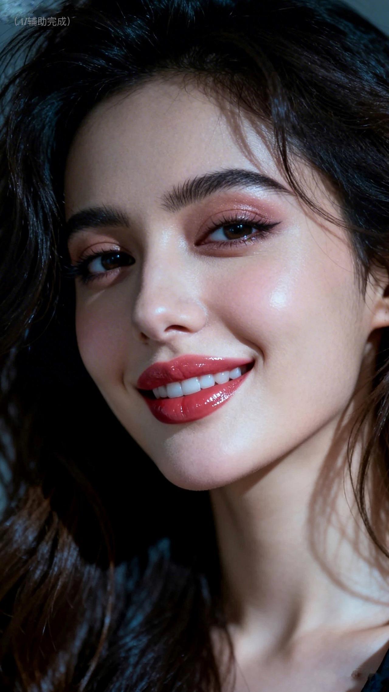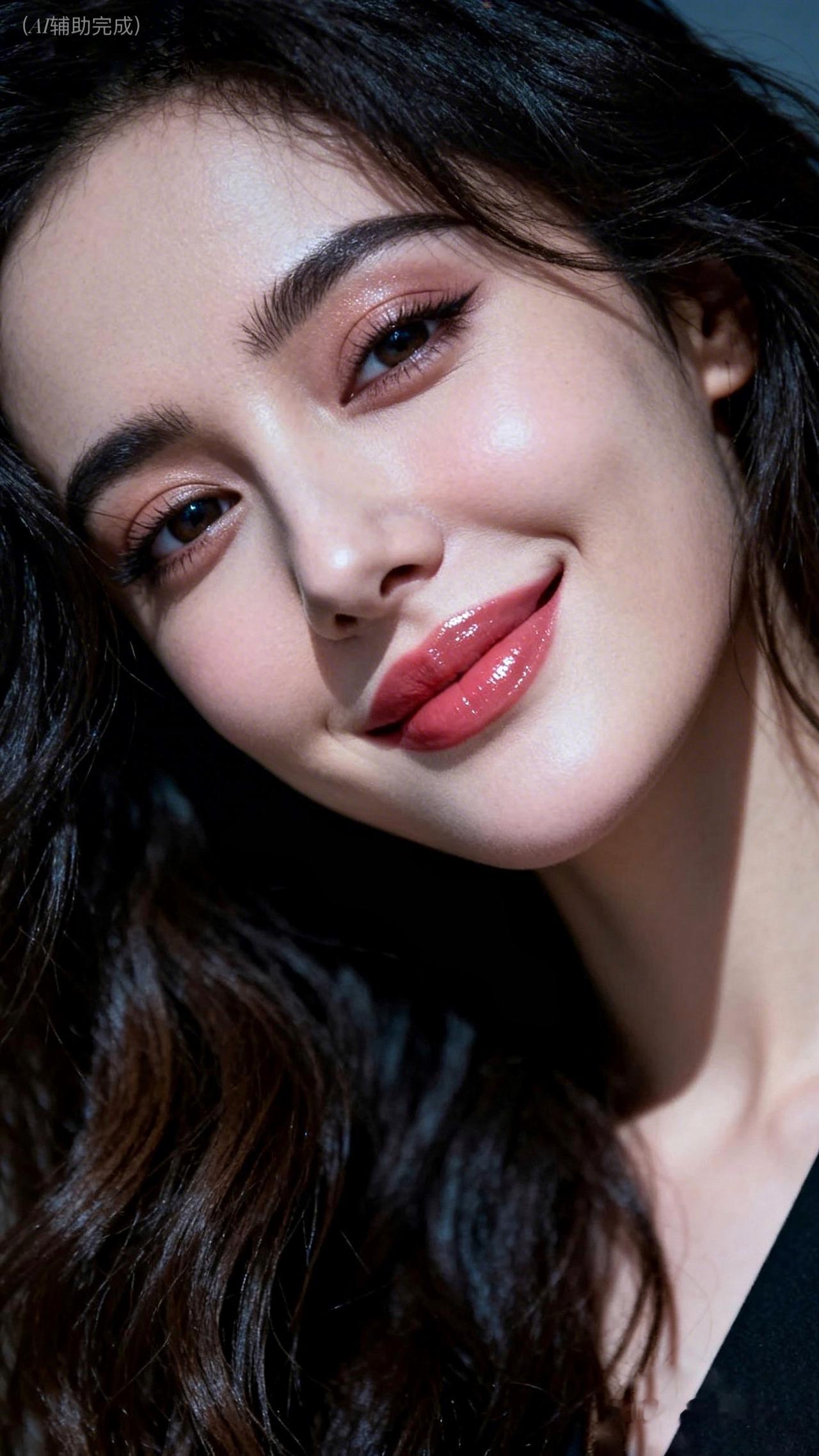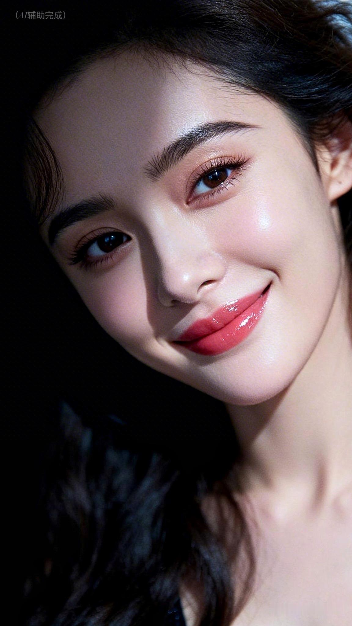 乌发如瀑垂落泛柔光,眉眼含情眸藏星,睫卷浓密似蝶翼。唇若玫瑰点绛,肤若凝脂映柔光。纯黑背景衬静谧,温婉优雅神韵漫帧间,这帧美人如工笔画,一眼沦陷!