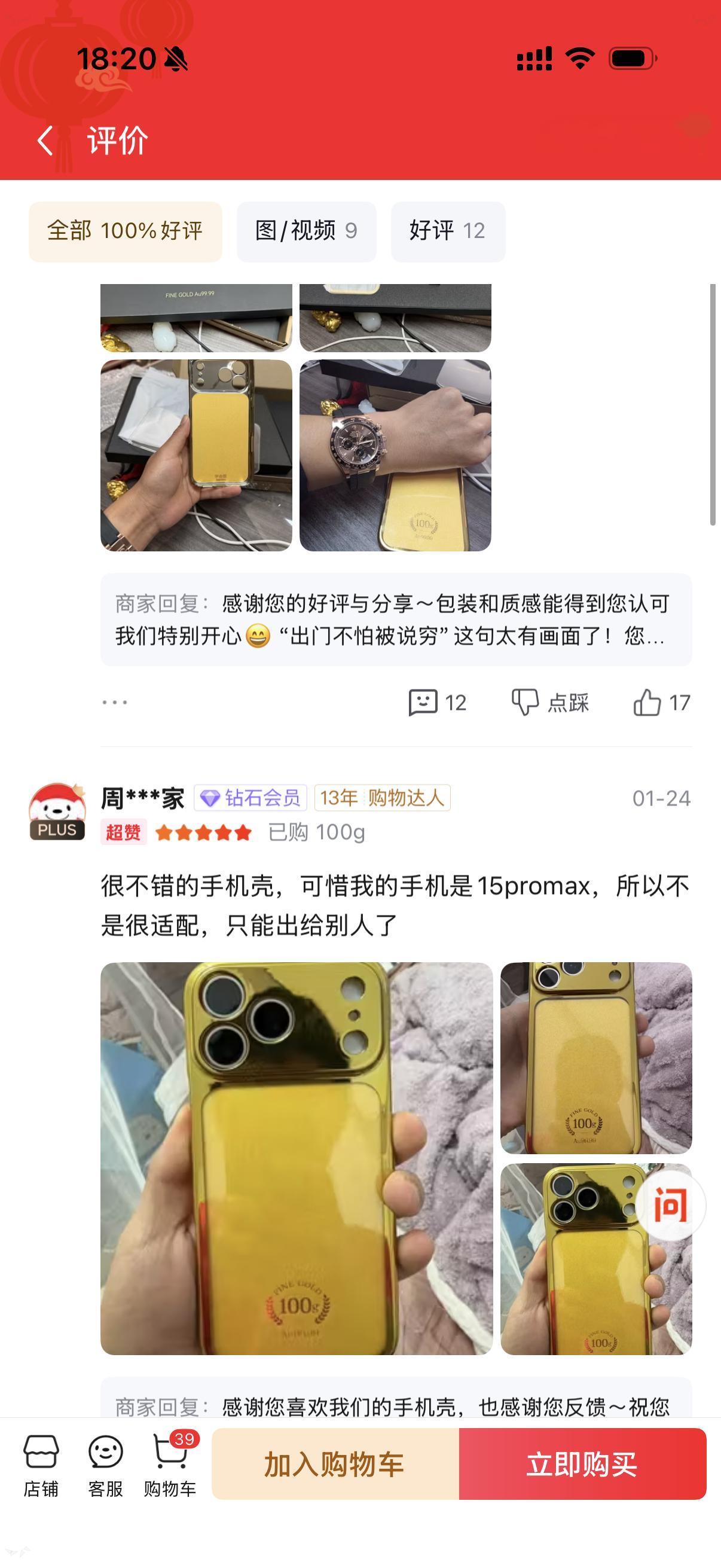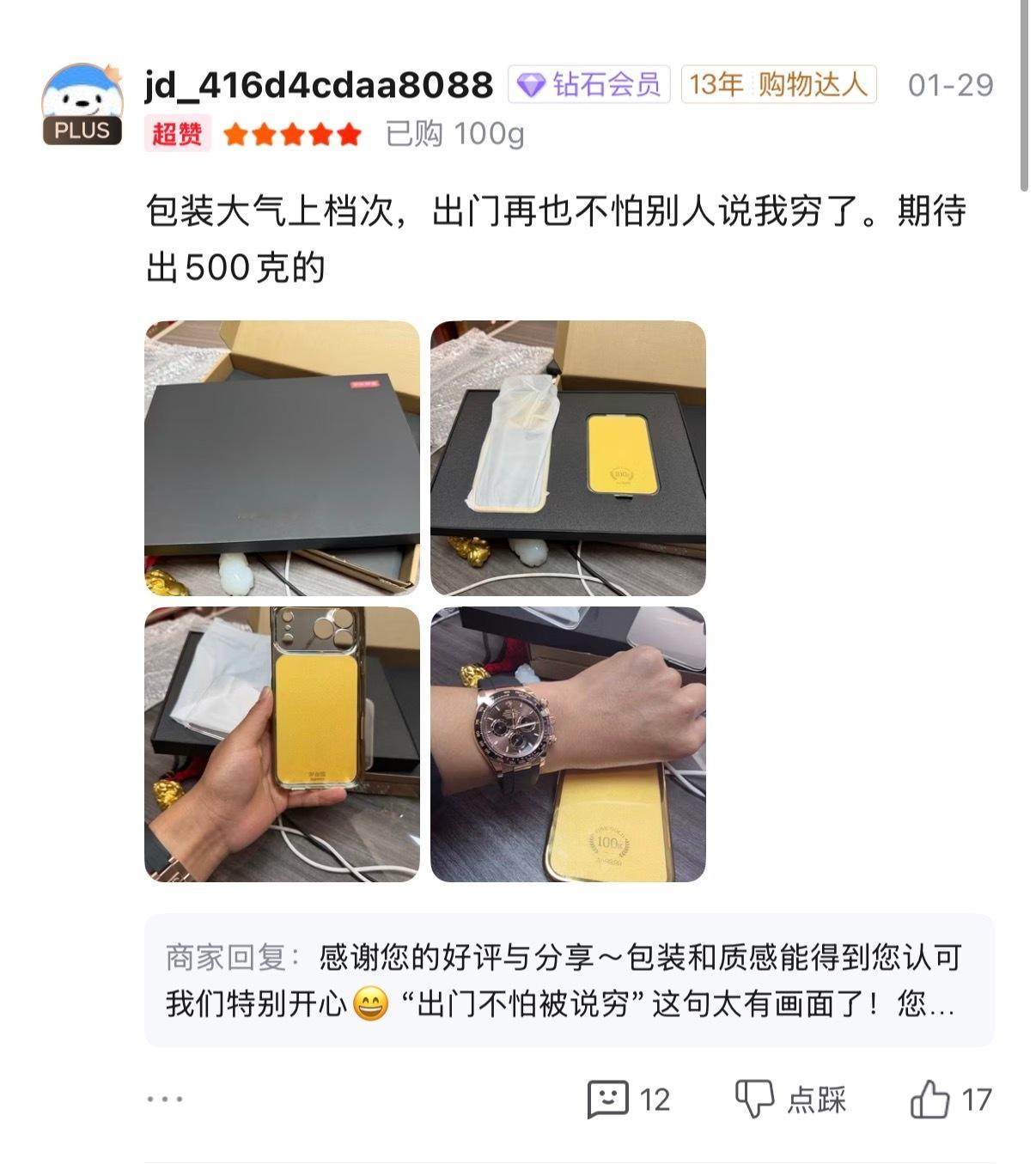 我以为这种100g金子139999的手机壳都没人买的,看了一眼评论区都有晒图的了,我承认我是穷人思想,算你们有钱,可特么嫉妒死我了
