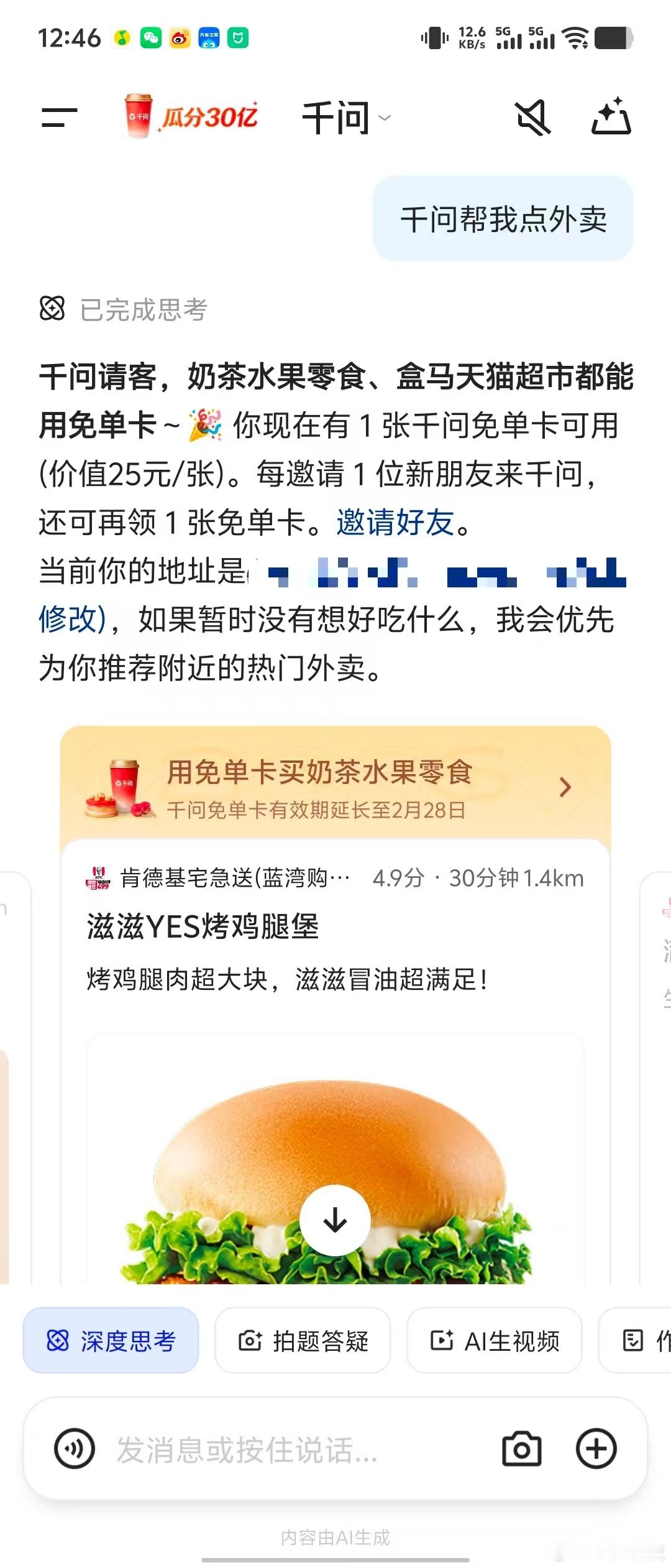 千家人AI购物实录虽然不是易烊千玺的粉丝,但作为一个被他种草的下载的千问APP的人,我真心感觉,AI时代,大家一定不要抗拒不要否定,积极尝试新事物真正去体验和感受它之后,你真的会爱上它。就好像千问APP,一开始我也以为,它顶多就是个点奶茶的工具,没太当回事,结果真正用了之后才知道,它能做的还有很多,简直不要太香。举个例子,以前买菜总爱漏东西,列清单又嫌麻烦,现在直接跟千问说要葱姜蒜、肉蛋奶,它就能一站式买齐,连我家猫星人的粮食都能顺手安排上。谁能想到,科技居然能把柴米油盐打理得这么细致,生活省心,幸福感无形中得到了提升。还有千玺作为千问全球代言人,含金量千家人应该都懂!以往点奶茶、外卖、囤货必须得在不同APP之间切换,现在直接吩咐千问就好,主打省事和方便。而且这一阵子下载能领25元免单卡,最低1分钱就能喝奶茶,这羊毛必须薅!把琐碎交给千问,把时间留给自己,追星还能解锁实用生活工具,千家人这波真的赢麻了,快来一起get这份难得的快乐吧~