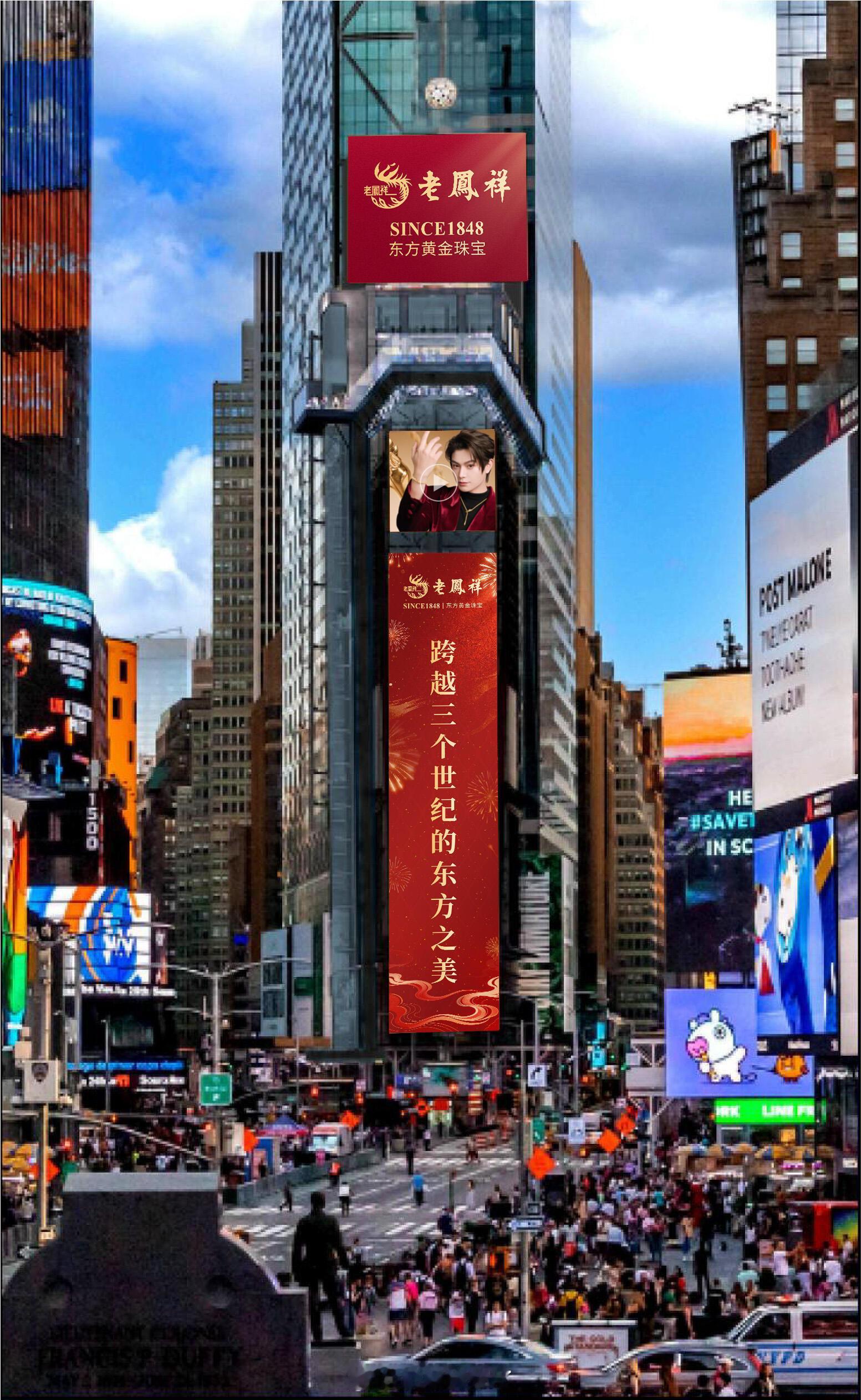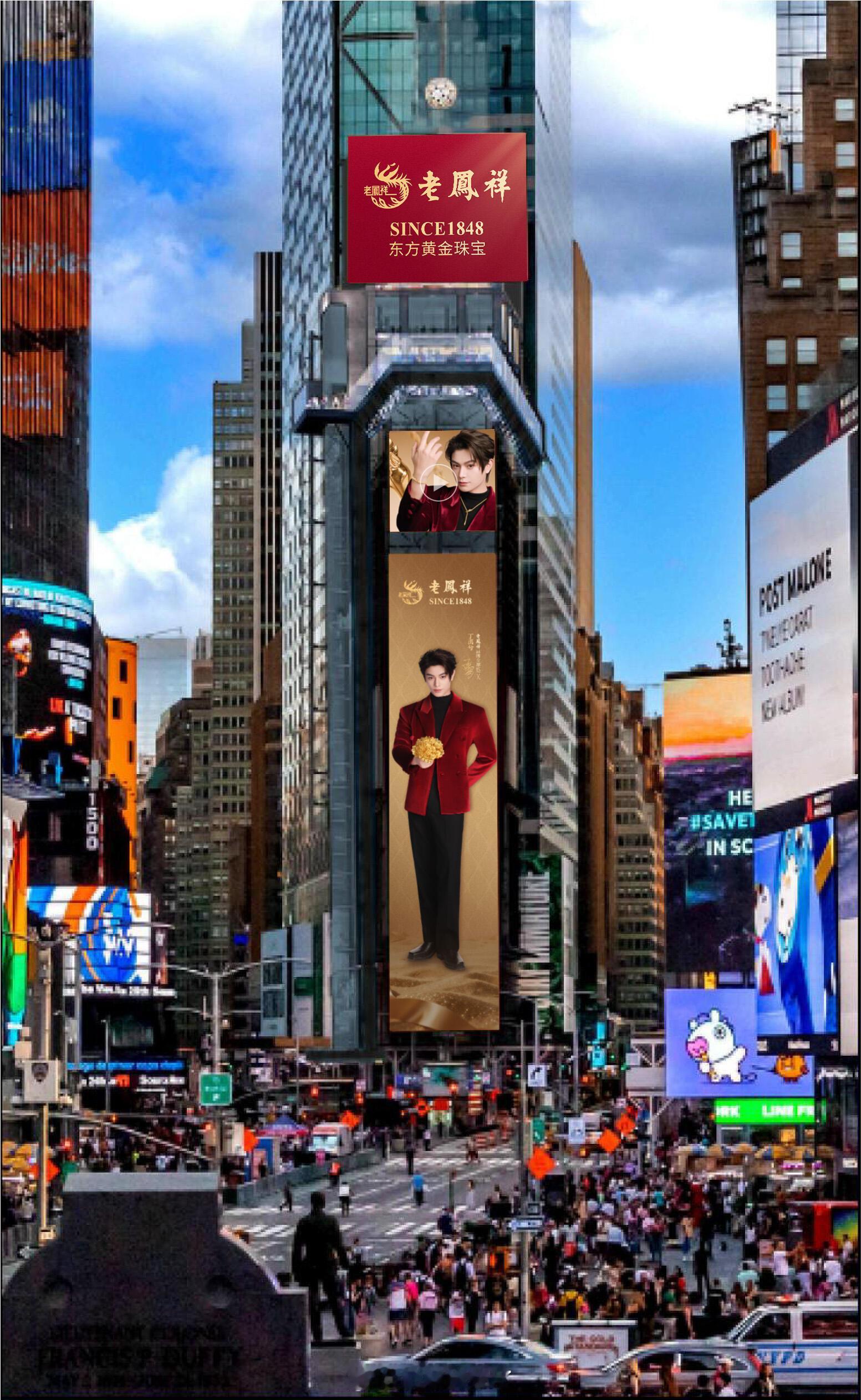 老凤祥携手品牌全球代言人丁禹兮点亮纽约时代广场大屏中国味的大屏红红又火火排面拉满