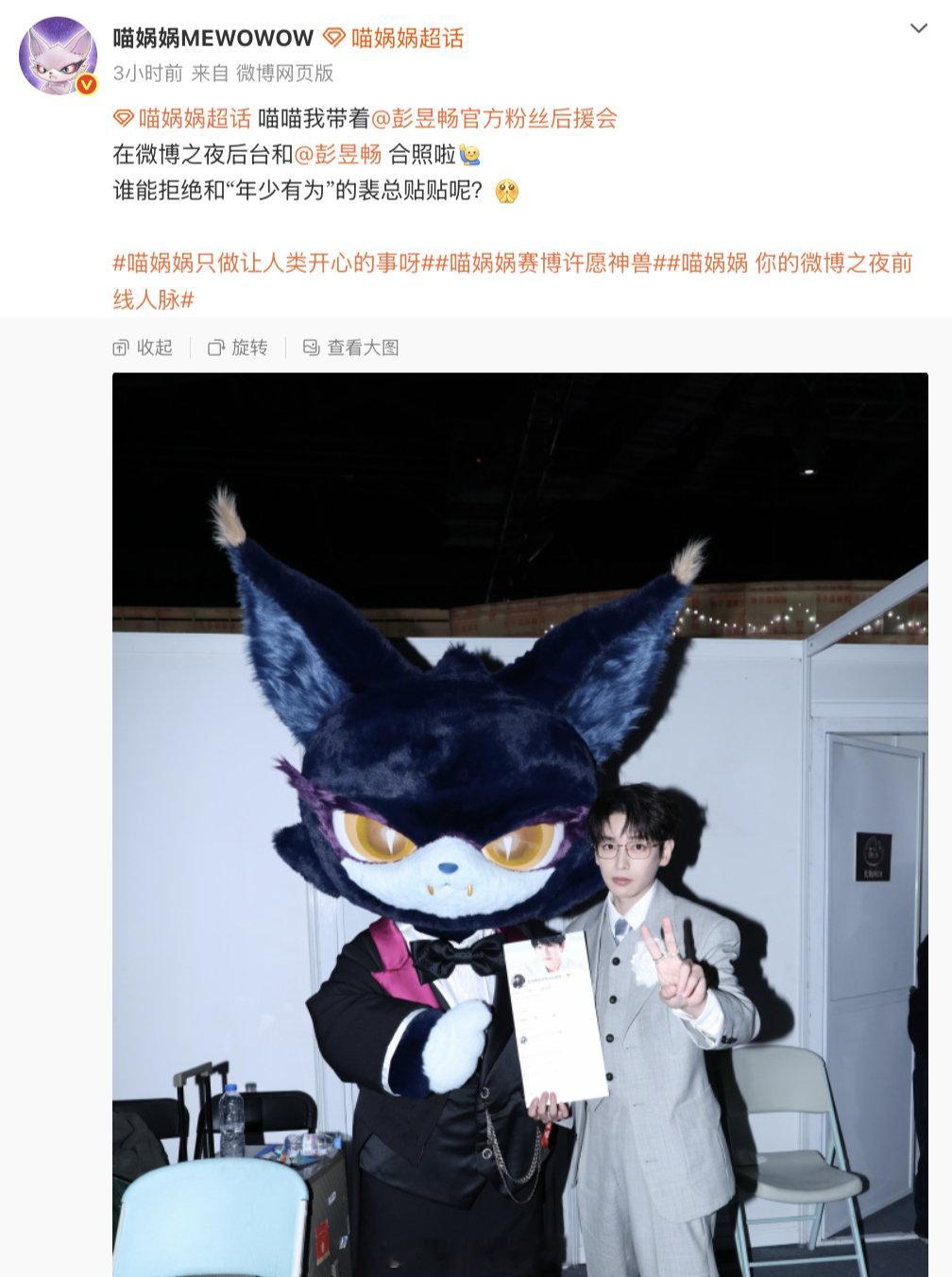 我的ID替我去了微博之夜 追星人狂喜!喵娲娲亲自下场替粉丝圆梦,背着ID去微博之夜后台和艺人合照,不用挤现场,ID已经替我见了想见的人,太宠了~