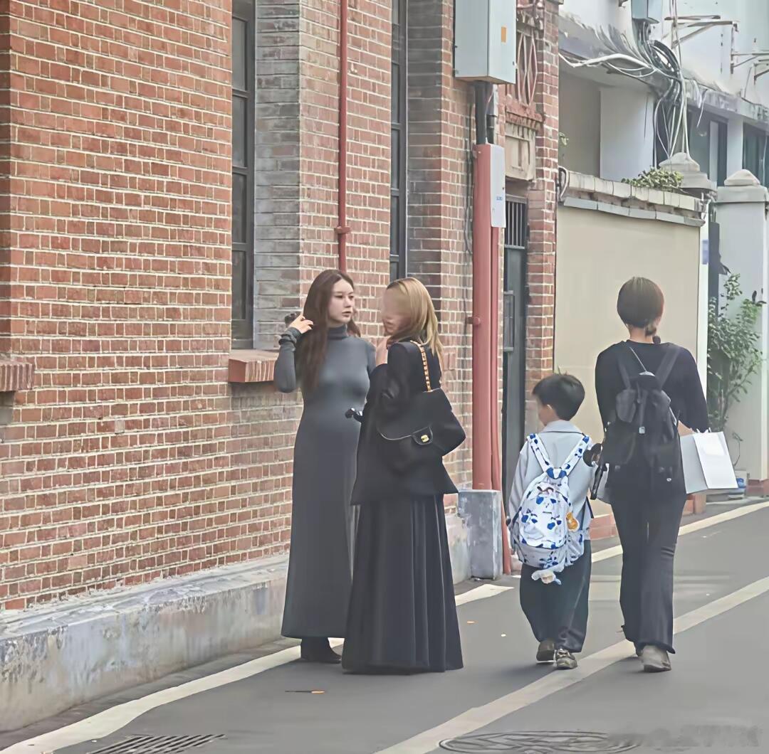 张天爱跟素人合影,胯真的好宽,大宅院似的