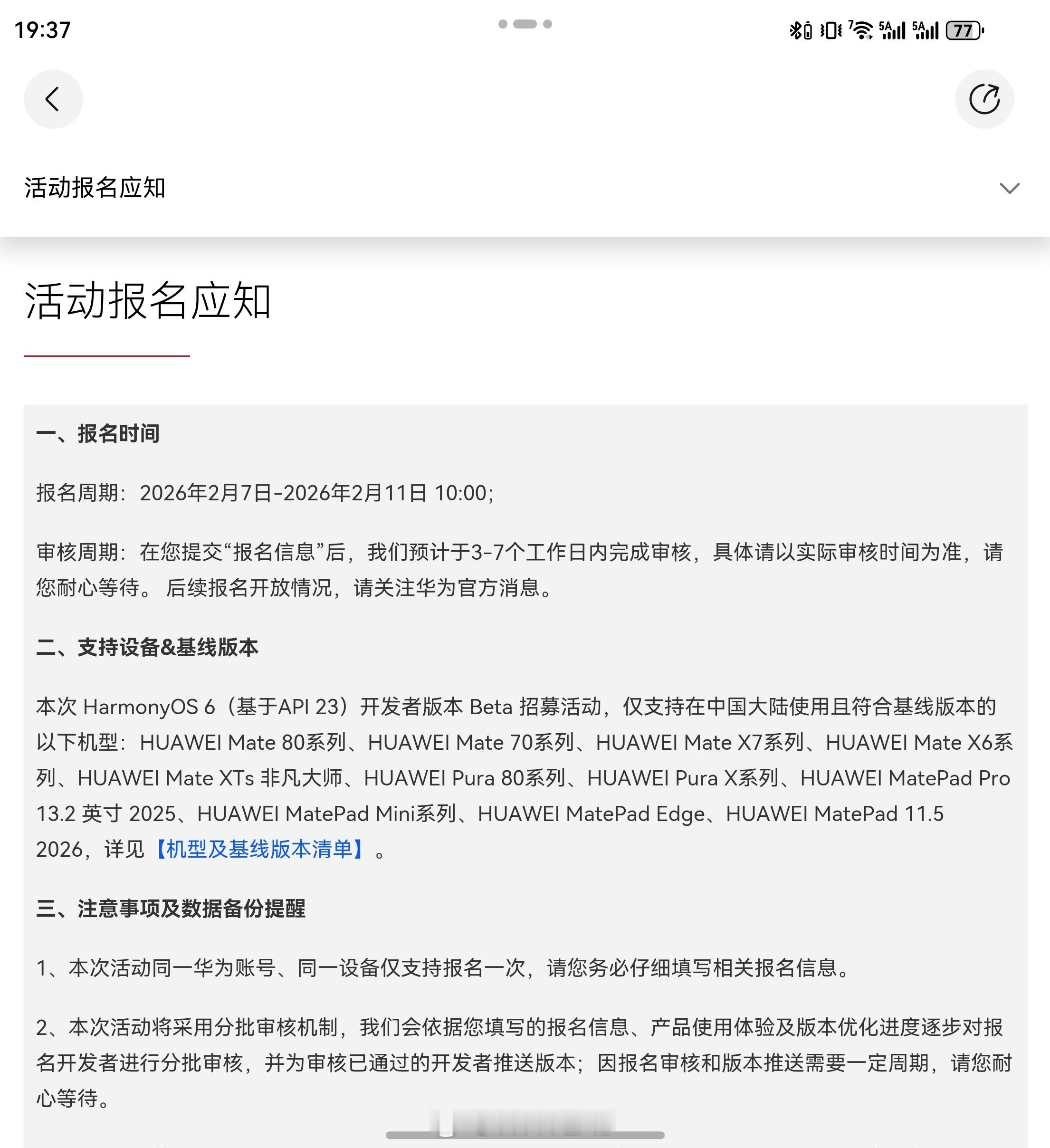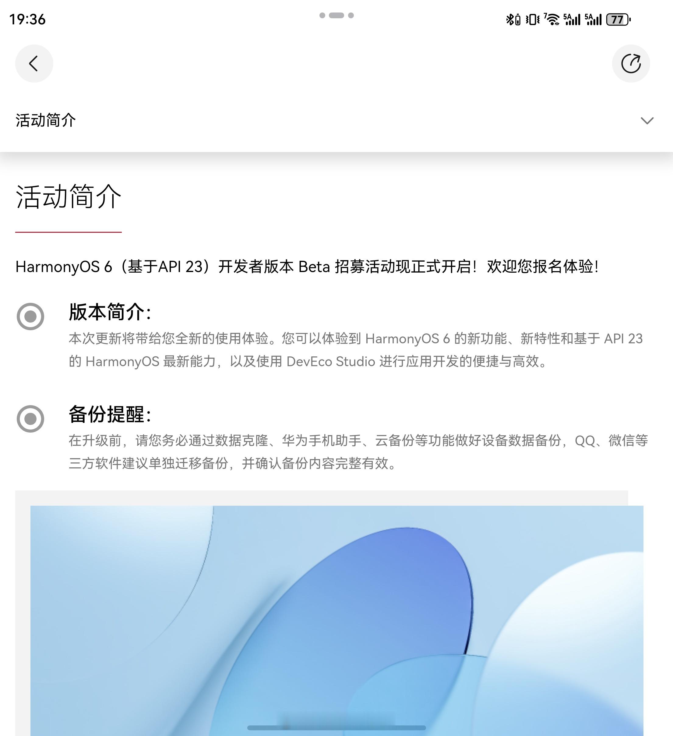 我也收到 HarmonyOS 6 迭代版本 HarmonyOS 6(基于 API 23)开发者版本的升级提醒了,更高效、更流畅、更便捷、更安全,足足 18GB 的大包,非常夸张,应该藏了不少好玩的新东西。