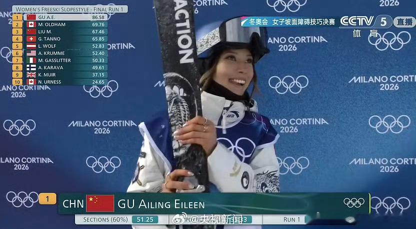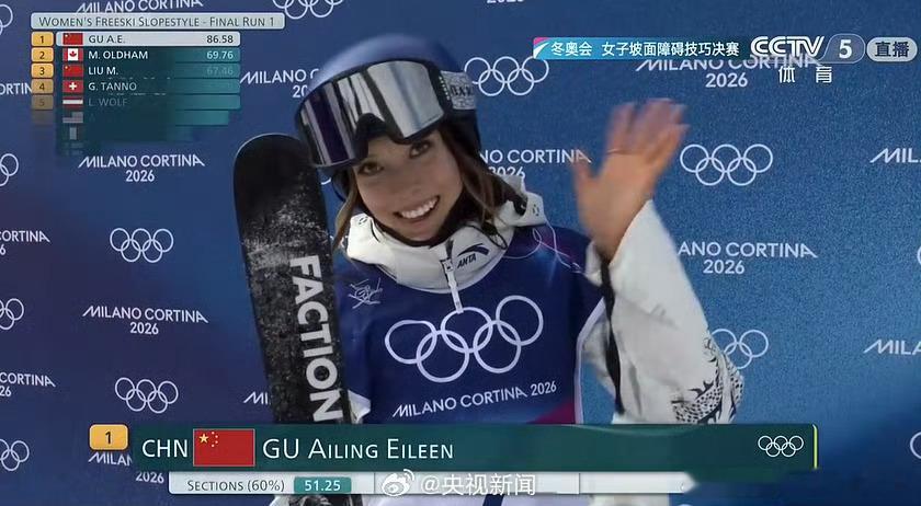 谷爱凌第一跳86.58分太牛了!谷爱凌第一跳86.58分!谷爱凌决赛