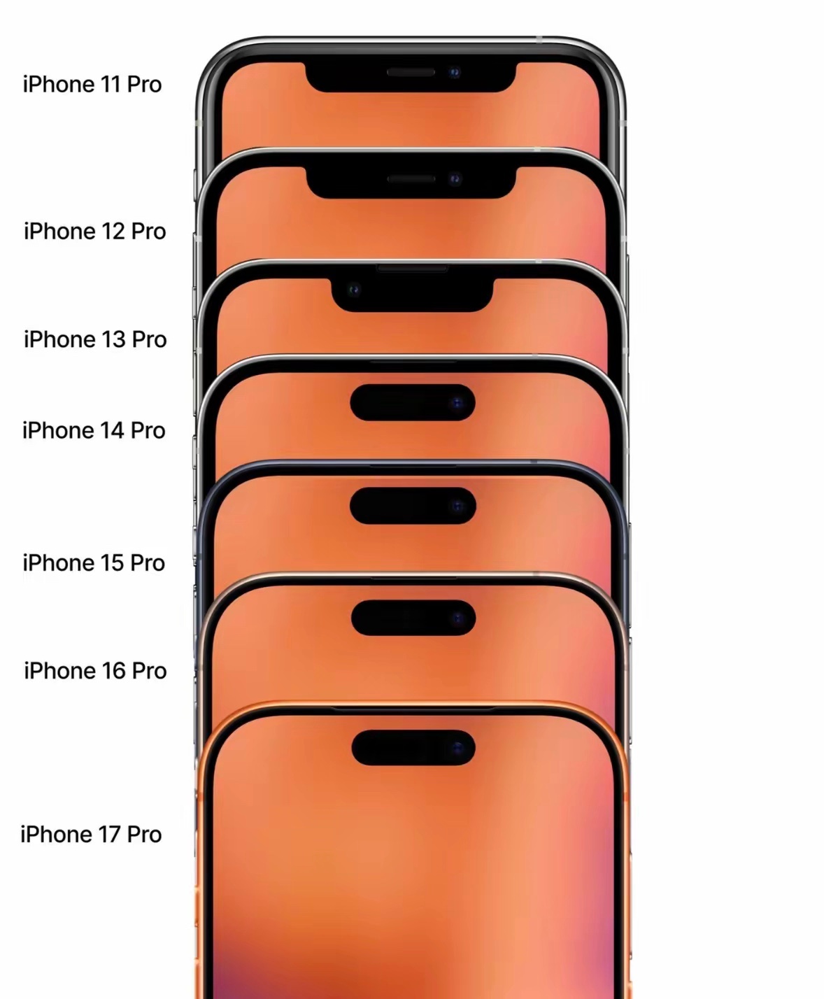 刘海四代,第五代缩小。灵动岛四代,第五代缩小。以此类推,iPhone20 真全面屏。