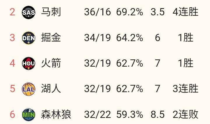 掘金34胜19负 火箭32胜19负 湖人32胜19负 掘金近4场输了3场,分别输给了雷霆活塞与尼克斯,在强强对话中接连遭遇败仗,一来影响了球队的士气,二来导致掘金队向火箭湖人看齐。目前三支球队负场数相同,排名紧咬。再者掘金比二者多打了2场比赛,所以暂列西部第3,同时落后第2的马刺2.5胜场。 火箭队在交易截止日毫无作为,不知管理层怎么想的?缺投手,空间感不好;缺控卫,太多个人单打,进攻不流畅。再加上亚当斯赛季报销,近3场输了26个篮板球。此外,伊森被提上先发后,火箭队替补实力不济,场均得分联盟倒数第二。所以,太依赖首发的表现。 湖人好不容易等到里夫斯的复出,然而东契奇又伤了,腿筋拉伤,不知缺席多长时间?而雷迪克在东契奇缺阵的前提下,目前让里夫斯打替补,詹姆斯又干起了老本行——组织大脑。然而毕竟年龄摆在那,近两场15次失误。反观里夫斯复出后的三场比赛,场均出战约23分钟得到22分&共计24罚球。 本月三支球队余下赛程对手依次为,掘金(骑士灰熊快船开拓者勇士凯尔特人雷霆),火箭(快船黄蜂尼克斯爵士国王魔术),湖人(雷霆马刺独行侠快船凯尔特人魔术与太阳)。火箭队赛程相比掘金与湖人轻松一些,不知能否抓住机会?