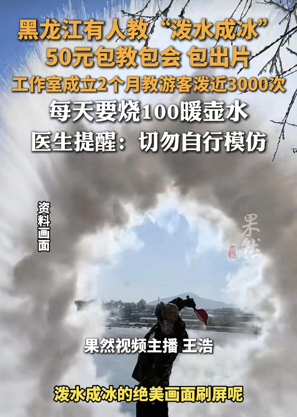 网上泼水成冰的视频一定惊艳了很多的朋友圈,黑龙江就有一位博主专门成立了工作室,教会外地的游客,用烧开的热水泼水成冰,两个月以来已经教会了3000多个游客,每天烧100壶的开水,包教包会,包拍包美。但是美丽画面的背后却有一定的安全隐患,之前就有外地的朋友用开水。制作泼水成冰,却发现倒下来的水依然是烫的,造成了二度烫伤。专家提醒,如果真的被开水烫伤,迅速用流动的凉水冲洗二三十分钟,再就医。