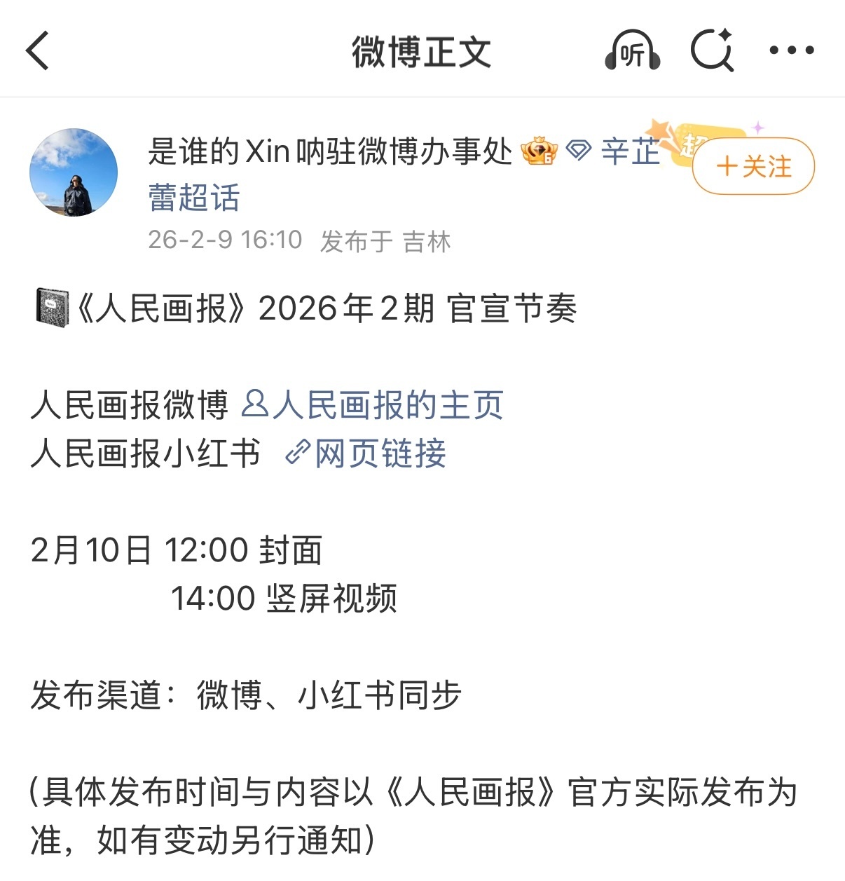 影后辛芷蕾登《人民画报》封面,上一期封面人物是6.1田栩宁