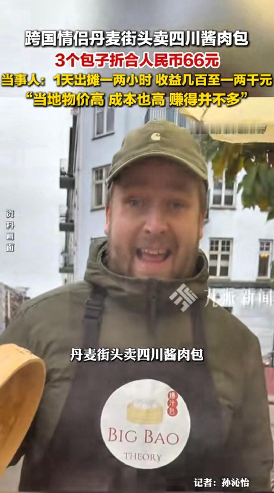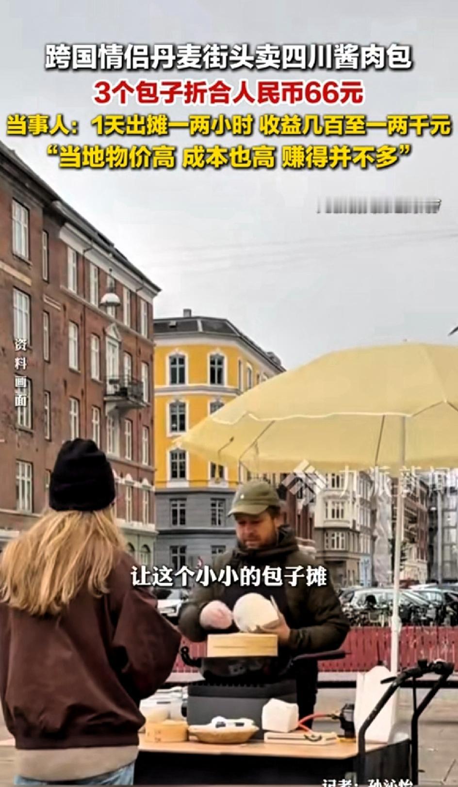 跨国情侣丹麦街头卖四川酱肉包,3个包子折合人民币66元。 在哥本哈根的公园一角,有个超火的网红包子摊。 丹麦小伙Peter推着三轮车卖四川酱肉包,目的是赚去中国女友QQ老家四川的机票钱。毕竟机票也要1-2万。 他的厨艺学自QQ母亲,用料扎实,努力还原四川风味。 单个包子卖25克朗,三个包子加一份辣椒酱60克朗,约合人民币66元。 看单价一个包子22元确实很高,但当地物价高,一点葱花就要20多元,看似收入高,其实投入成本更高。 当事人:一天出摊1-2个小时,收益几百至一两千,当地物价高,成本高。赚的也并不多。 这生意开始可不容易。2025年3月第一次出摊,炉火点不着,包子凉了没人买。 但他们没放弃,做挡风板、换燃气灶、试各种面粉、调馅料配方。四个月后重新出摊,受北欧天气影响,一天最多出摊一两个小时,能赚几百到一两千。爱情和美食的结合,真让人感动!