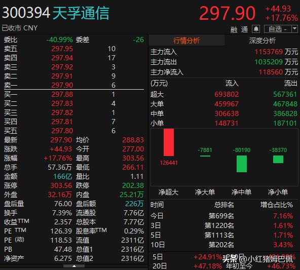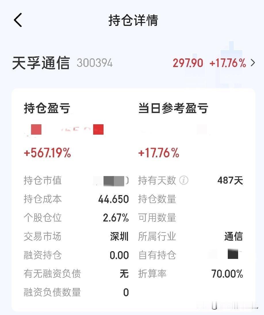今天为了驳斥“巴菲特老先生”高徒对于知识无用,认知有用,我们这种没有认知的人也拿不住股票赚不到钱的高论,晒了一下我3000多天的招商银行持仓和2000多天的纳指持仓。结果评论区里有人对2000天出头(6年不到点)的纳指只赚了101%很看不上(实际是定投仓位),那么好,晚上我就继续晒晒我持仓480多天的其他仓位,收益率也不是很高,也就500%多.......我依然对市值做了打码,这样可以照顾一下玻璃心的读者和巴老高徒,你们可以当我就200股(科创板最小单位)。 同时,我也预告一下,天孚通信这家公司,有空我组织一下语言和大家好好介绍科普下。而且,我在一年前,就写过中国的龙头,提到了它!你们一定不要看那些垃圾内容,因为天孚通信现在PB在48倍左右,哪怕我建仓时,也有10倍左右了,我会用科普让大家理解,如果你在头条只看那些说市盈率20以下才合理,市净率最好打折,市值低于净资产的公司才值得买的内容,你终将错失许多机会!同样也声明一下,此处并不构成任何对具体公司的投资建议!