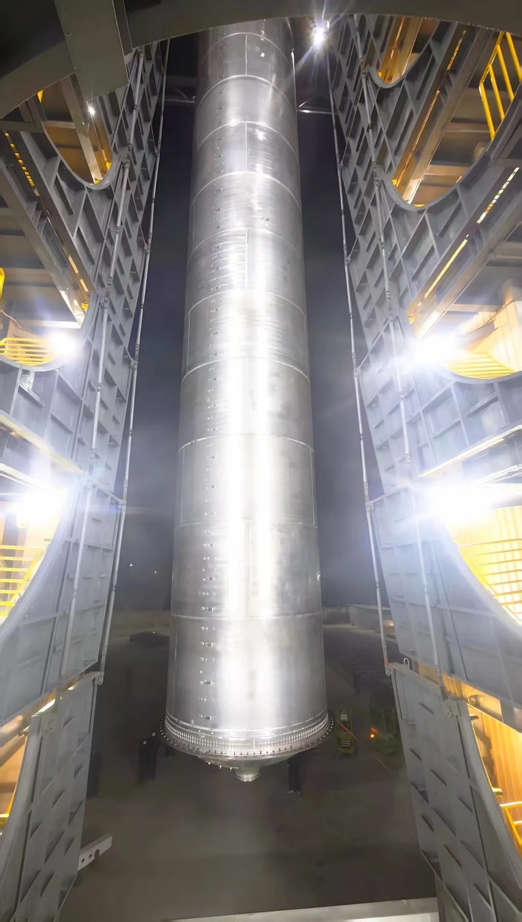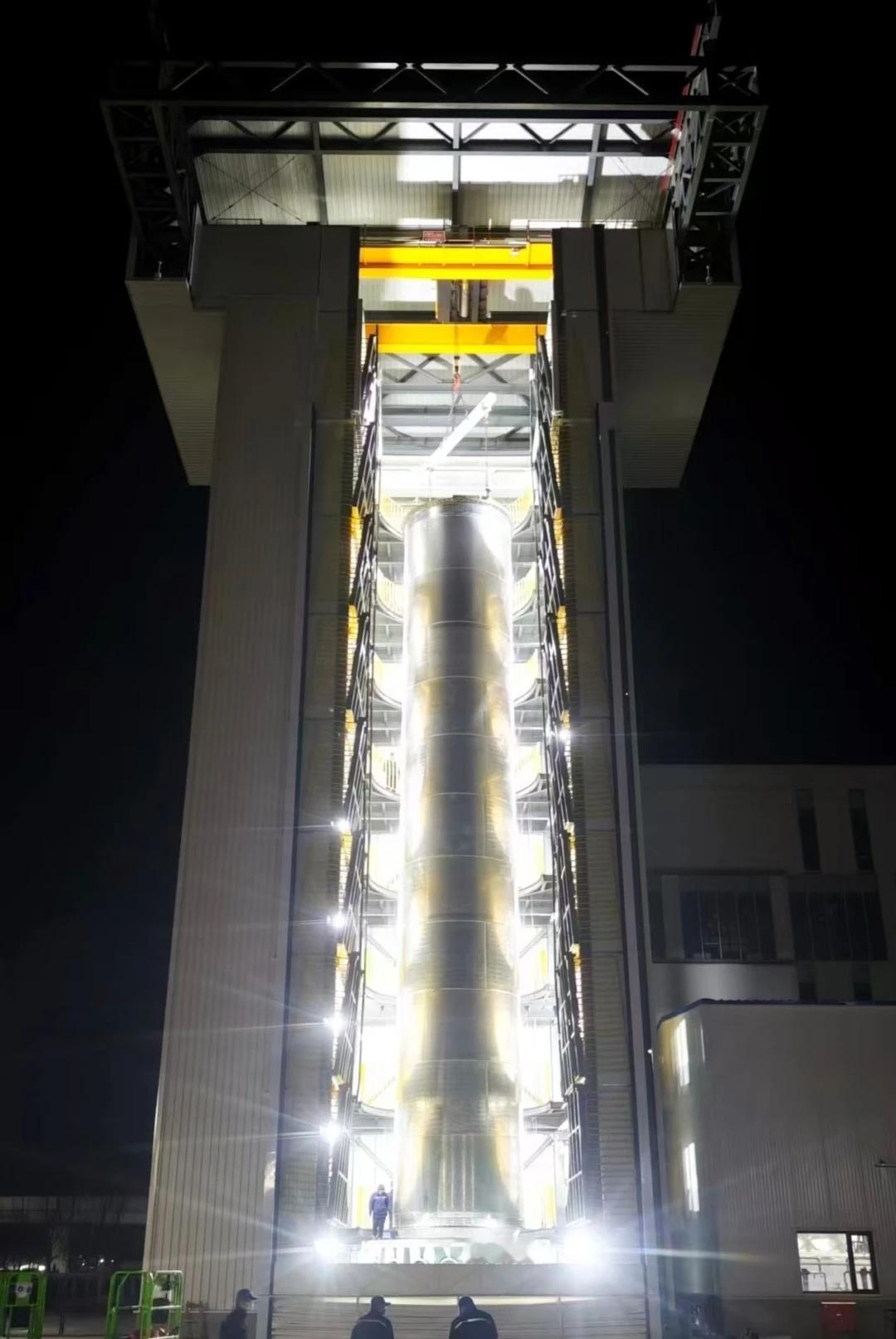 火箭贮箱作为火箭箭体核心承力结构载体,集储液、承压、传力、承载于一体,其制造精度与性能可靠性直接决定火箭飞行安全。本次完成试验的贮箱长度为23396mm,属于典型的大直径超长航天结构件,兼具尺寸大、焊缝长、刚度低的结构特点,在制造过程中易出现焊接变形、装配精度偏差等问题,对成形、焊接、装配等全流程工艺控制提出极高要求;同时,0.683MPa的液压考核压力,需贮箱在承压状态下保持结构完整性与密封可靠性,是对产品材料性能、焊接质量、整体结构设计的综合严苛验证。整箱液压试验是火箭贮箱产品从制造走向交付的核心验证环节,依据航天标准,对贮箱结构强度、刚度性能、密封可靠性、焊接质量及整体稳定性进行全面考核。本次试验严格遵循航天产品生产制造流程,参照GJB 908A-2024《首件鉴定》标准要求实施全流程质量管控与数据追溯,试验系统按既定大纲完成分级增压、额定保压、平稳卸压全流程闭环作业,全过程实现试验参数实时监测、精准可控。经严格保压考核与全面检测,该首件贮箱箱体无泄漏、无塑性变形、无结构异常,关键受力部位状态优良,强度与密封性能完全满足设计指标,首件产品鉴定验证工作取得圆满成果。