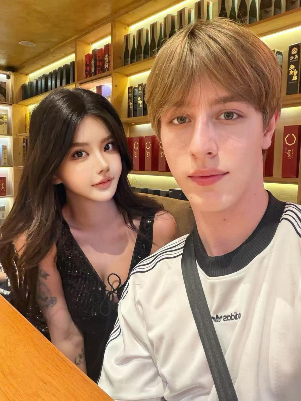 张天爱跟素人合影,胯真的好宽,大宅院似的