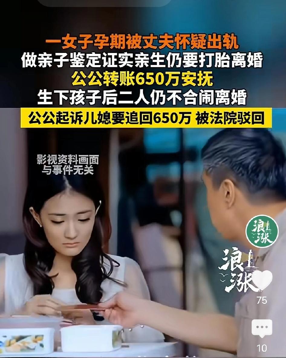 太解气了!丈夫隐瞒婚史,还瞎猜孩子不是亲生的,公公转650万补偿儿媳买房,结果儿媳起诉离婚没成后,公公反倒拿出儿子单独写的借条,告儿媳还钱,法院直接全驳回了,这笔钱到底算啥,认定太关键了! 2020年12月小唐和小谢领证结婚,谁能想到这婚从媳妇怀孕就开始糟心。小谢怀了孕,才发现老公小唐结过婚,他还一遍遍地怀疑孩子不是自己的,非要做亲子鉴定。结果鉴定实锤孩子是亲生的,可小谢早被这没来由的猜忌伤透了心,气到想打掉孩子离婚。换谁遇上这么不信任人的老公,心里都堵得慌,婚姻本就是靠信任撑着,刚怀孕就没了信任,后面的矛盾其实早就埋下了。 2023年4到6月,公公老唐看在眼里,觉得儿媳孕期受了大委屈,想补偿她,分三次给小谢转了650万,每笔转账都明明白白写了“购房款”。这笔钱很快就用来买了上海的学区房,房子还直接登在小谢一个人名下。明眼人都能看出来,这就是公公主动给的安抚和补偿,实打实送出去的钱,谁能想到,这份补偿最后竟成了两家闹矛盾的由头。 2023年6月小谢生了孩子,可夫妻俩的感情早就碎了,根本补不好,同年9月两人就分开过了。小谢起诉离婚,结果法院没支持,谁料婆家接下来的操作,更让人寒心。 老唐突然拿“儿子儿媳借了钱不还”当理由,把小唐和小谢一起告上法院,让俩人还650万购房款,还要算利息,手里的证据就只有儿子小唐自己签的一张借条。更可气的是,小唐还直接站在他爸这边,说这笔钱是和媳妇商量好借的。这父子俩联手的操作,真把婚姻里最后一点情分都磨没了,明摆着就是想在离婚前,把给出去的补偿款再要回去。可小谢从始至终都不知道有啥“借款”,更别说签字同意了。 还好法院的判决守住了公道,直接驳回了老唐的所有要求,这结果一点都不意外,不管是讲法还是讲道理,都站得住脚。老唐手里就只有儿子自己写的借条,压根没证据证明小谢知道、同意这笔借款,或者事后认了这笔账,一个人说的话,根本约束不了另一个人。更何况,650万买的学区房,本来就不是夫妻俩日常过日子必须的东西,完全不符合夫妻共同债务的认定条件。 - 有网友说:“干得漂亮!法院判决太公正了,孕期受的委屈不是白受的,补偿的钱凭什么要回去,单方借条就是废纸!” - 也有网友说:“这丈夫和公公也太算计了,孕期猜忌、离婚要钱,从头到尾都是算计,一点人情味都没有!” - 还有网友说:“婚姻里最可怕的就是不信任和算计,从孕期猜忌开始,这家人就输了,法院的判决既讲法也讲理” 说白了,这事儿就是婆家打得一手如意算盘,孕期对不起儿媳,用650万做补偿表心意,转头离婚就想把钱往回要,还拿个单方借条当幌子,天底下哪有这么好的事。 法院这判决就是明明白白告诉所有人,做事得讲良心、讲规矩,夫妻之间的债务不是一个人说了就算,给出去的补偿也不能出尔反尔。婚姻里要是只剩算计,那最后输的肯定是自己,别以为耍点小聪明就能钻法律的空子,公道自在人心,法律也绝不会惯着这种无理的操作。 这个事情大家怎么看呢? 公公转650万补偿儿媳被起诉还钱 法院驳回单方借条还款诉求 夫妻共同债务认定标准
