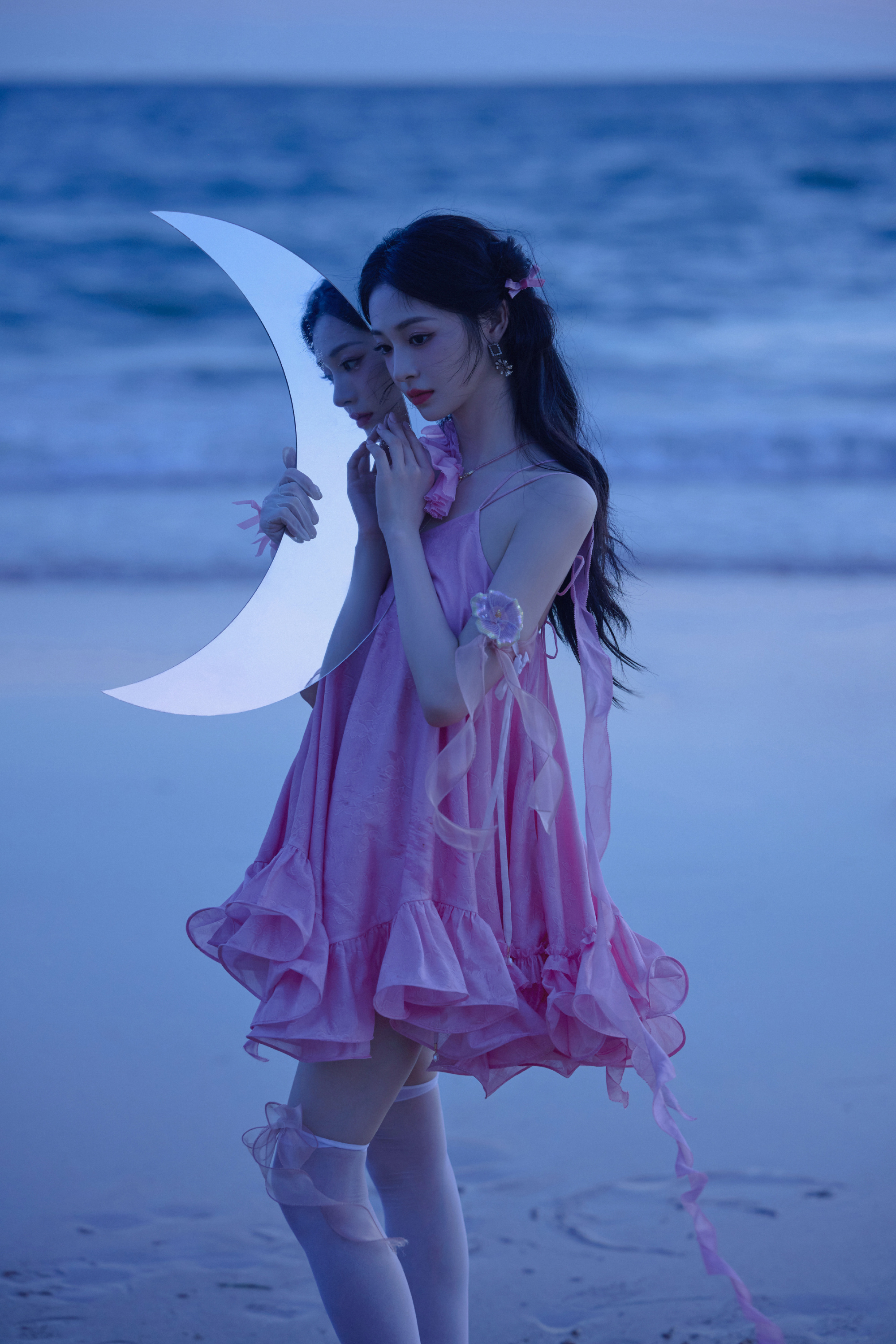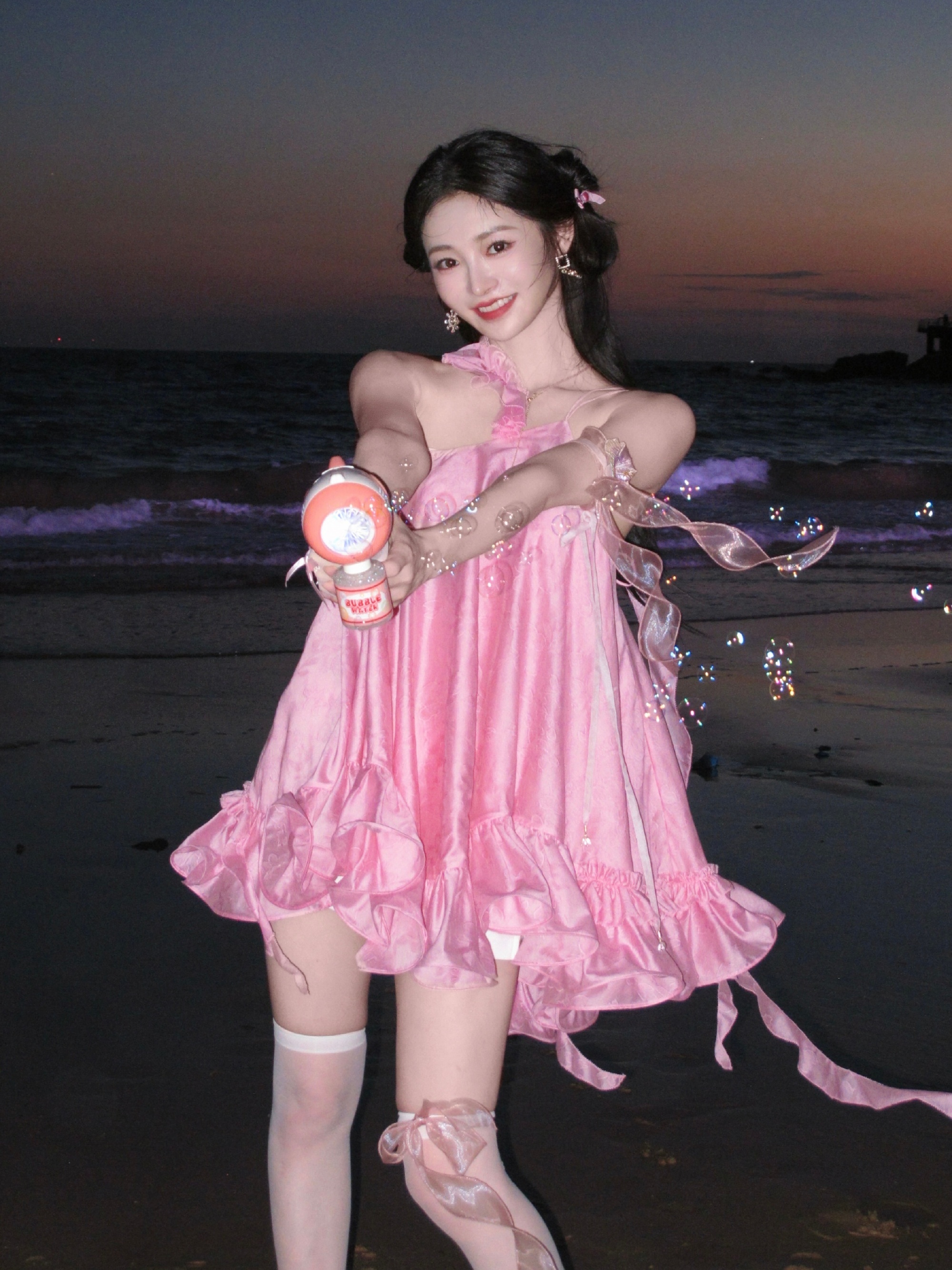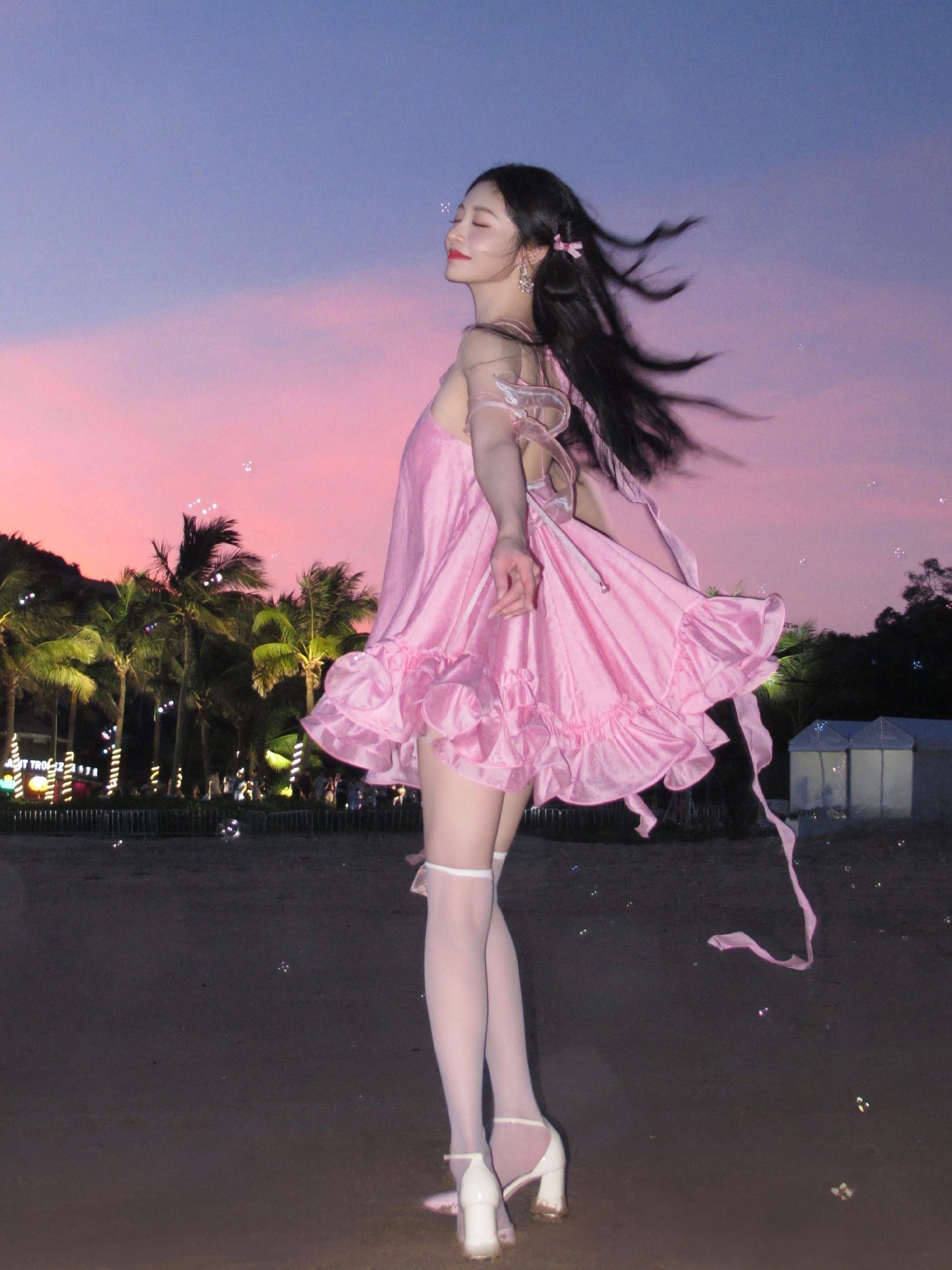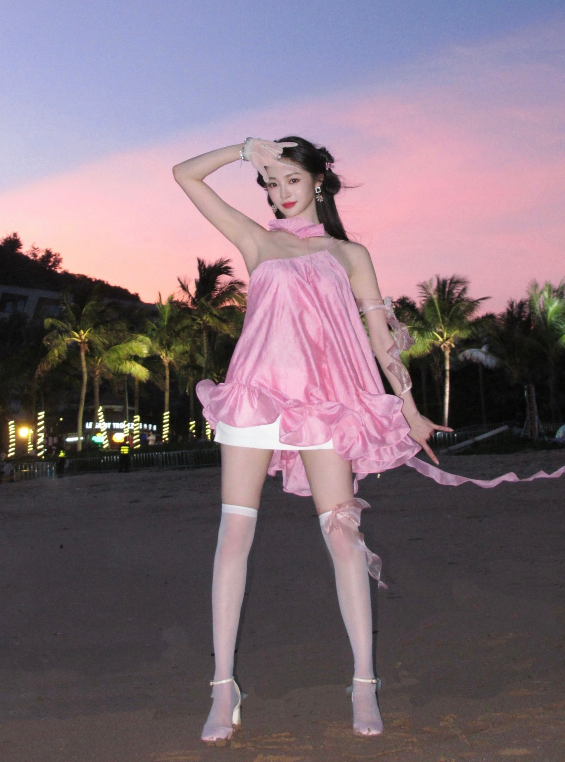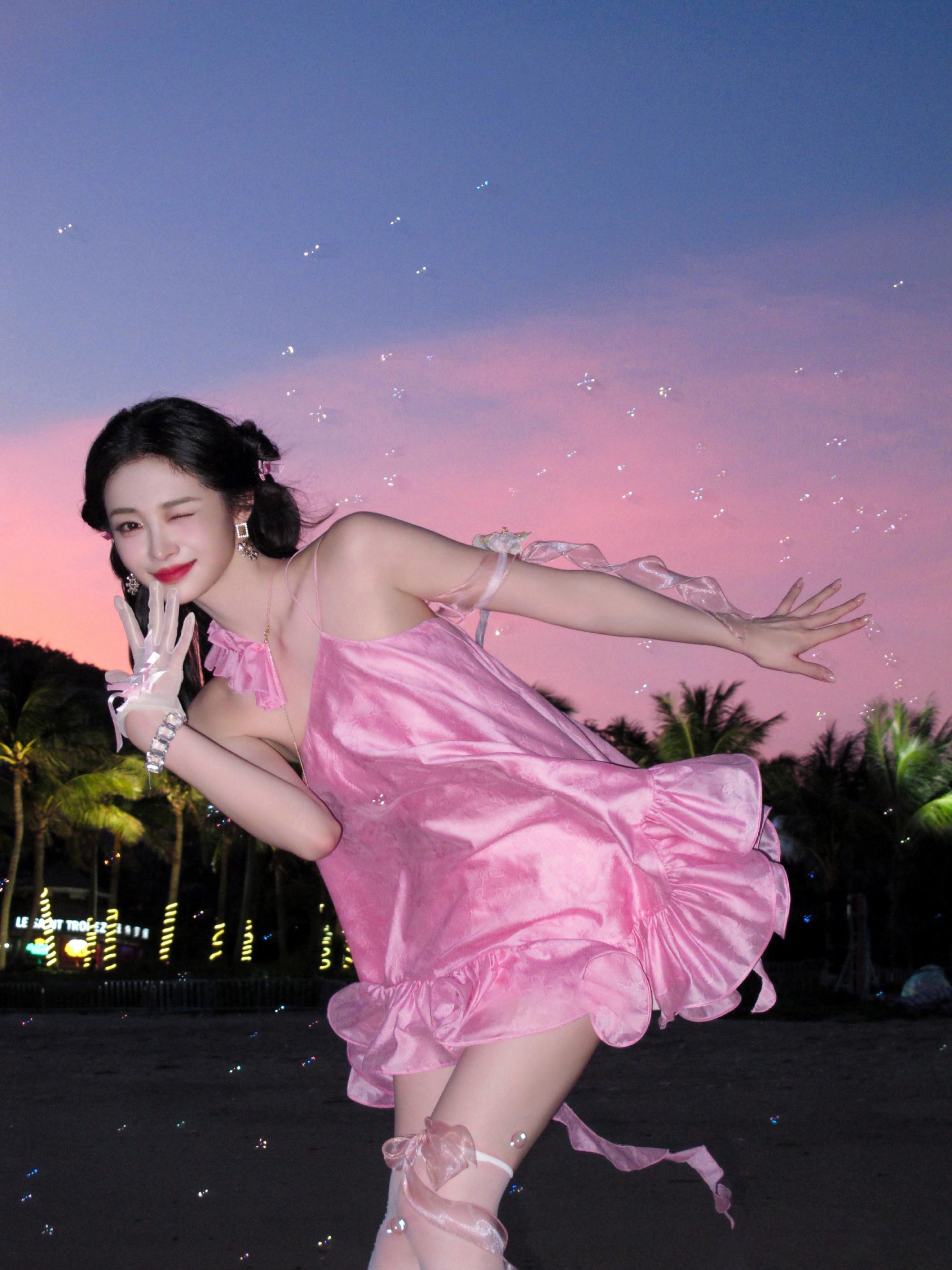 周洁琼丝袜大长腿穿搭写真,好喜欢这套粉粉的好可爱。周洁琼